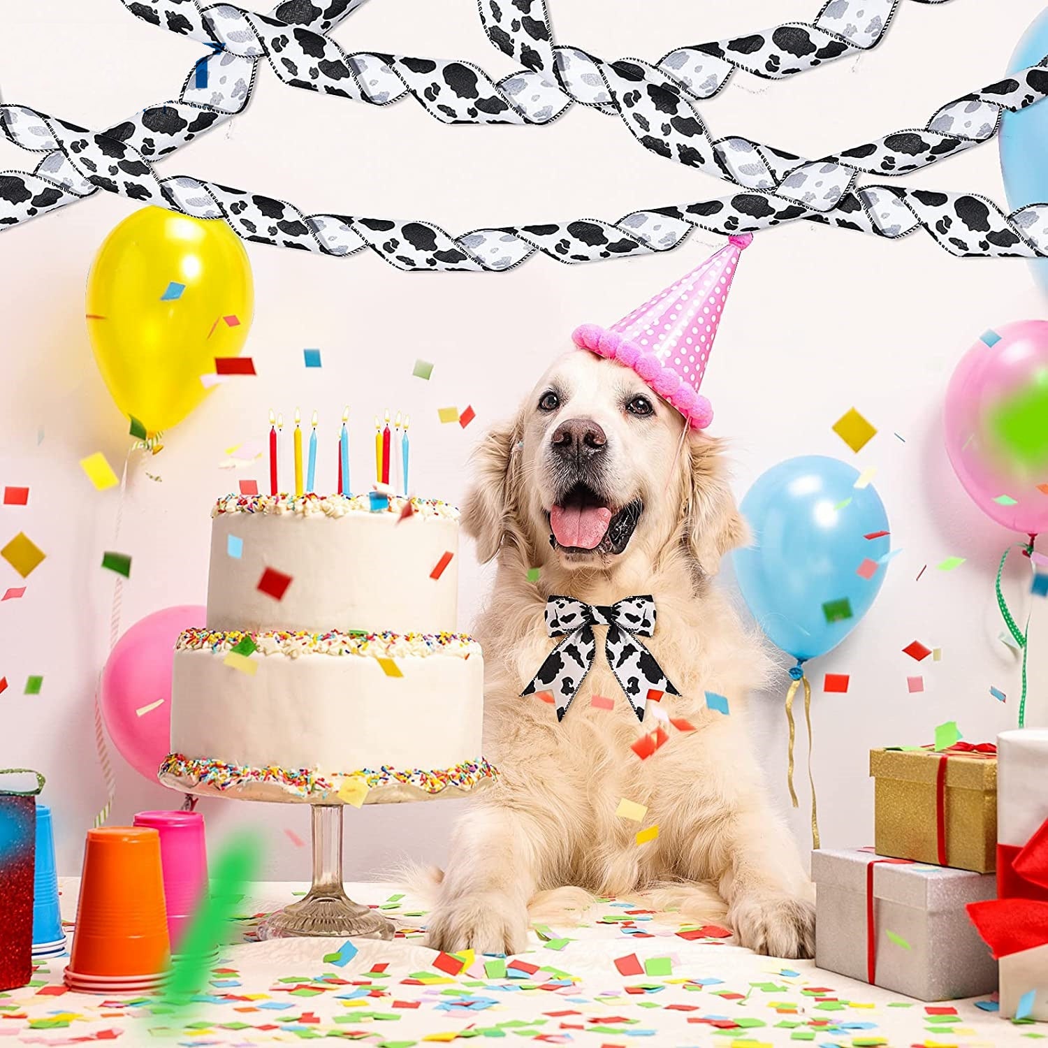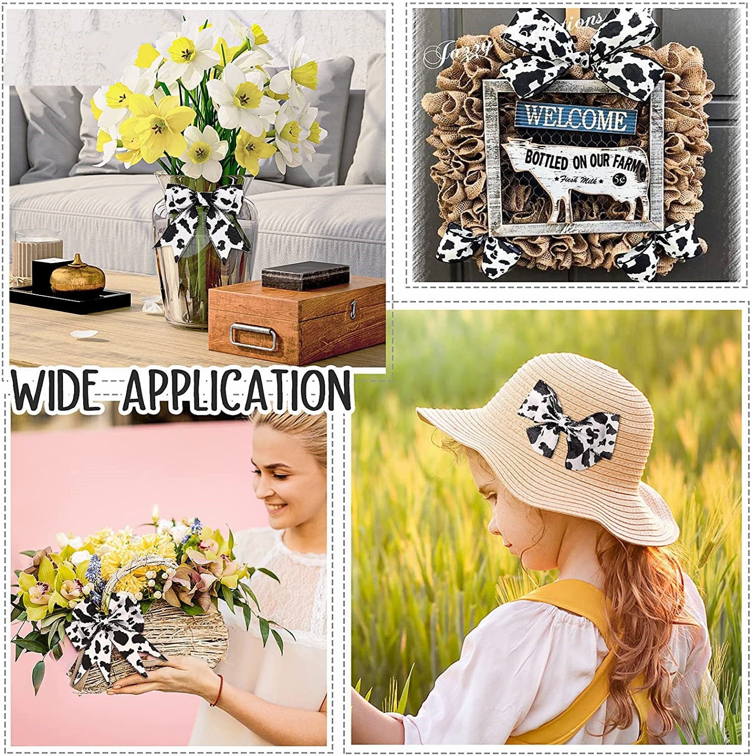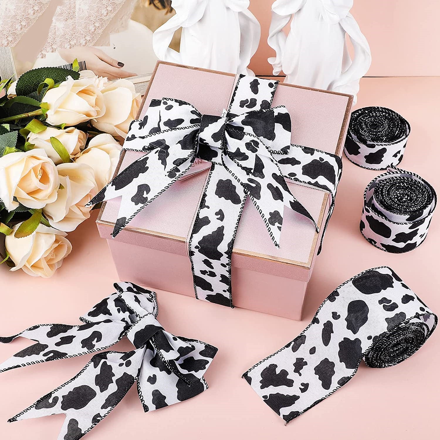 Bandă tiv cu margine de sârmă 40/50/63mm Temă imprimeu vacă Panglică 3 pachete 15 yarzi