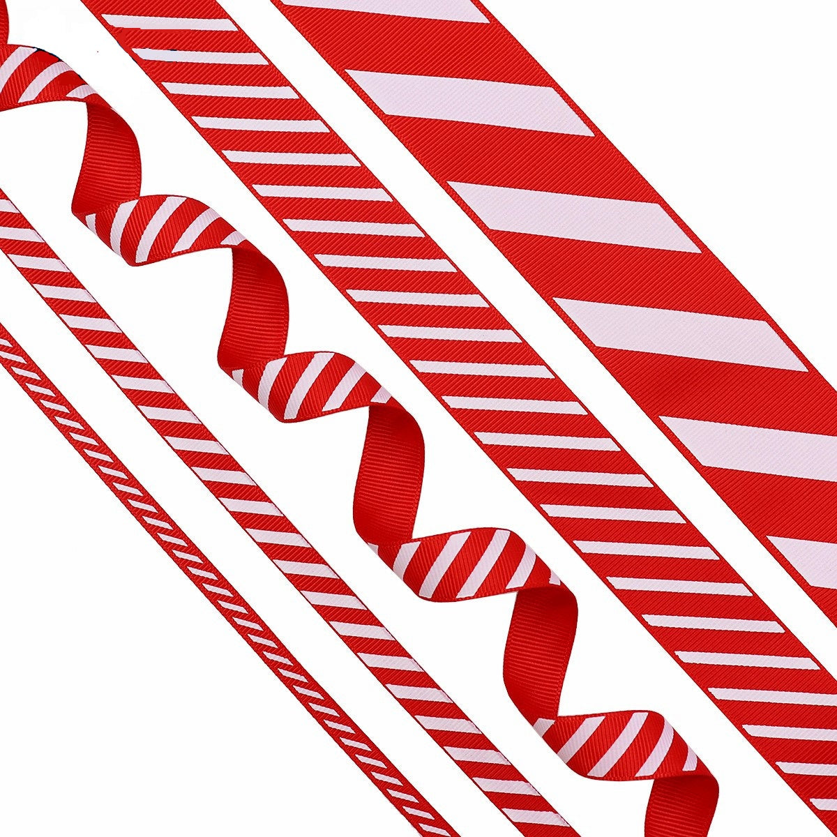 Panglică în relief cu dungi roșii și albe de Crăciun 6/10/16/25/38mm, pachet de 5 mărimi, 25 de yarzi