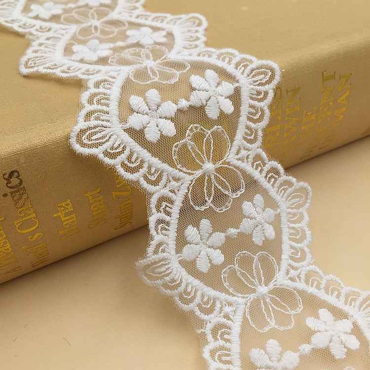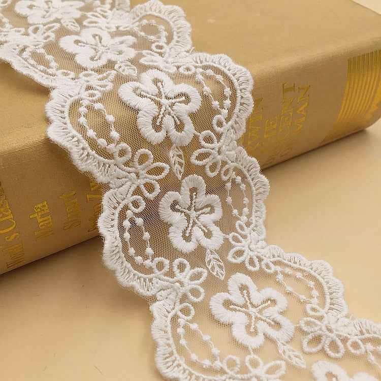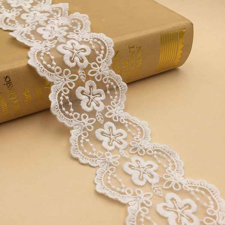 Dantelă brodată din bumbac alb cu plasă lată de 6CM, 10 yarzi