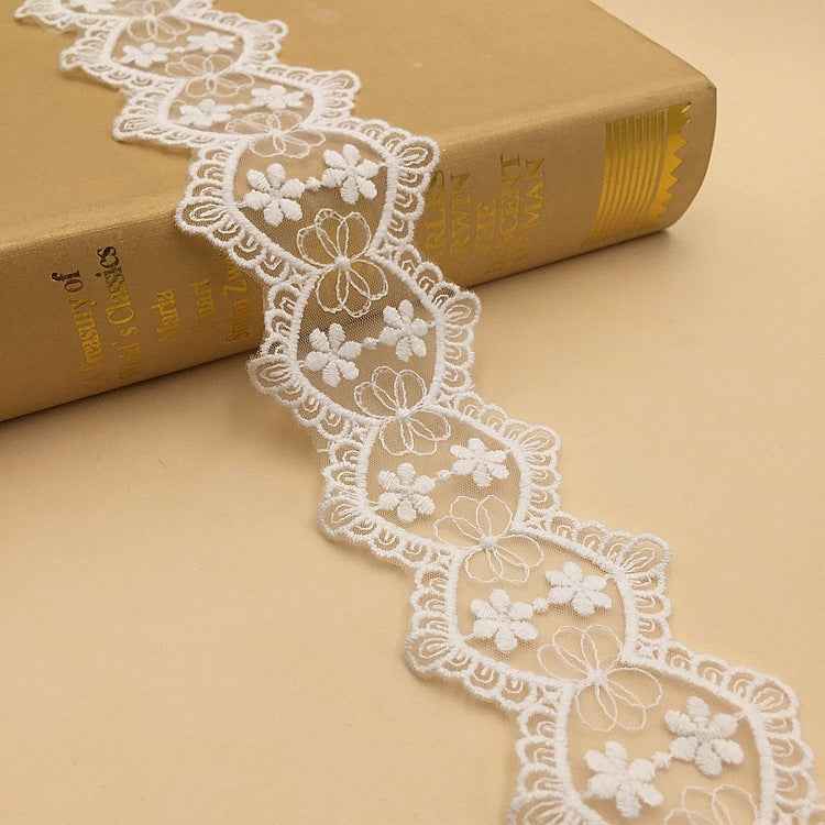 Îmbunătățește-ți proiectele de cusut și DIY cu această dantelă brodată din plasă de bumbac albă, elegantă, cu lățimea de 6CM! Perfectă pentru a adăuga o notă delicată, cu inspirație vintage, la perdele, mâneci, rochii și alte ornamente vestimentare, această dantelă combină frumusețea cu funcționalitatea.