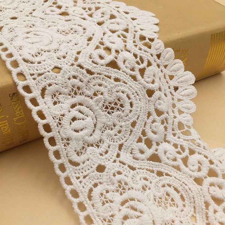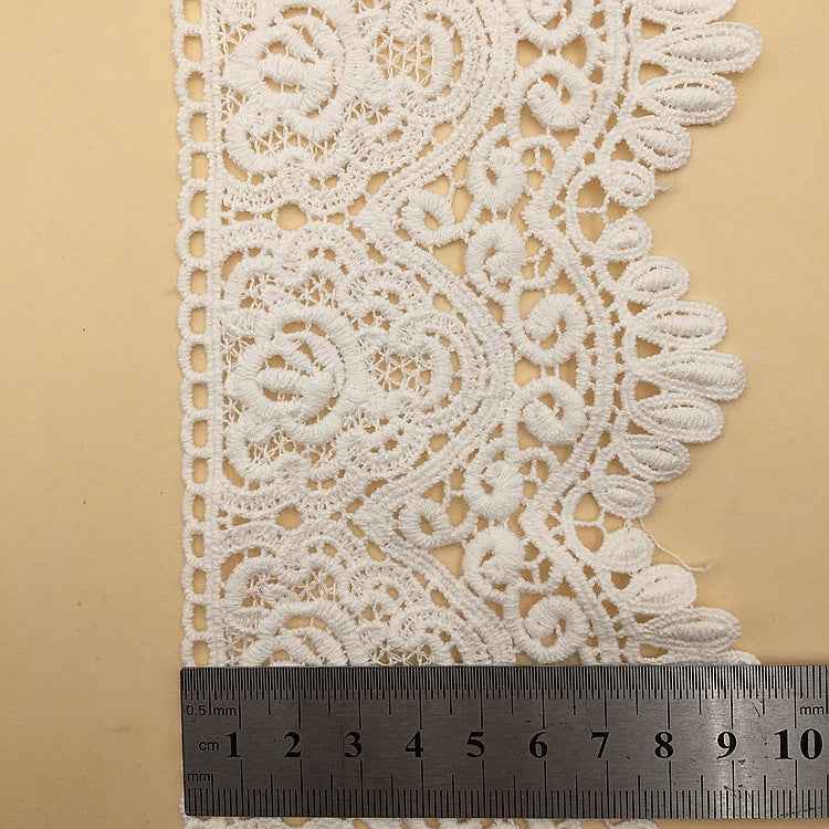 Adaugă un aer modern și sofisticat designurilor tale cu dantela brodată geometrică din bumbac alb solubil în apă, lată de 9,5 cm. Această dantelă rafinată prezintă modele geometrice complexe pe o bază moale din bumbac de înaltă calitate, oferind un aspect elegant și contemporan. Caracteristica solubilității în apă permite personalizarea ușoară, fiind perfectă pentru aplicații creative precum broderie, aplicații sau proiecte DIY. Ideală pentru rochii de mireasă, rochii de seară sau decorațiuni interioare, această dantelă adaugă o notă de eleganță oricărui proiect. Cu o lungime generoasă de 5 yarzi, vei avea suficient material pentru a împodobi rochii, accesorii sau obiecte decorative. Ușoară, durabilă și versatilă, această dantelă este un must-have pentru a adăuga un plus de rafinament și artă creațiilor tale. Ridică-ți designurile cu această dantelă frumoasă chiar azi!