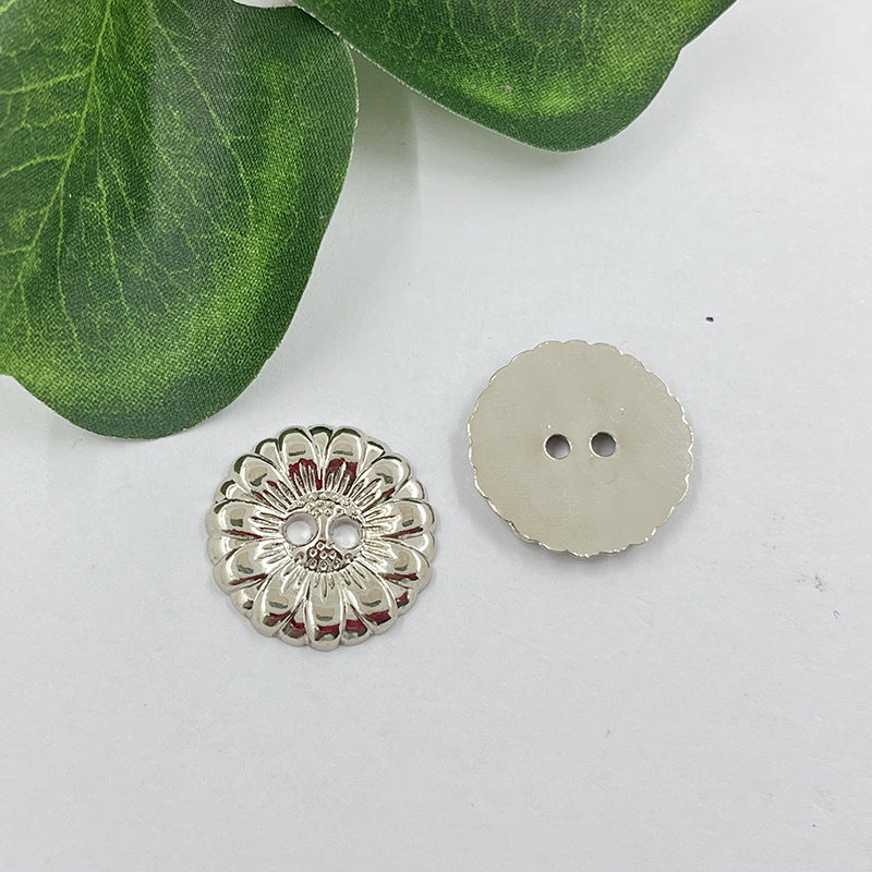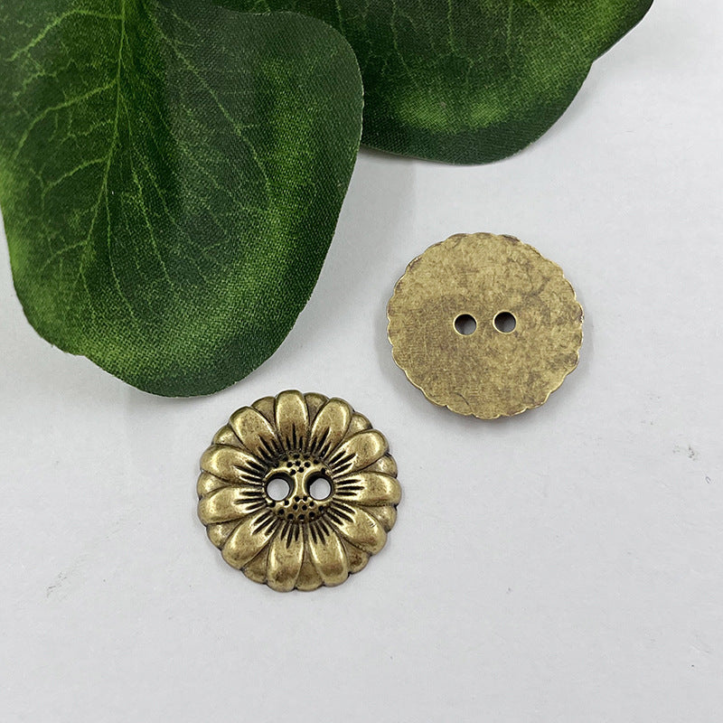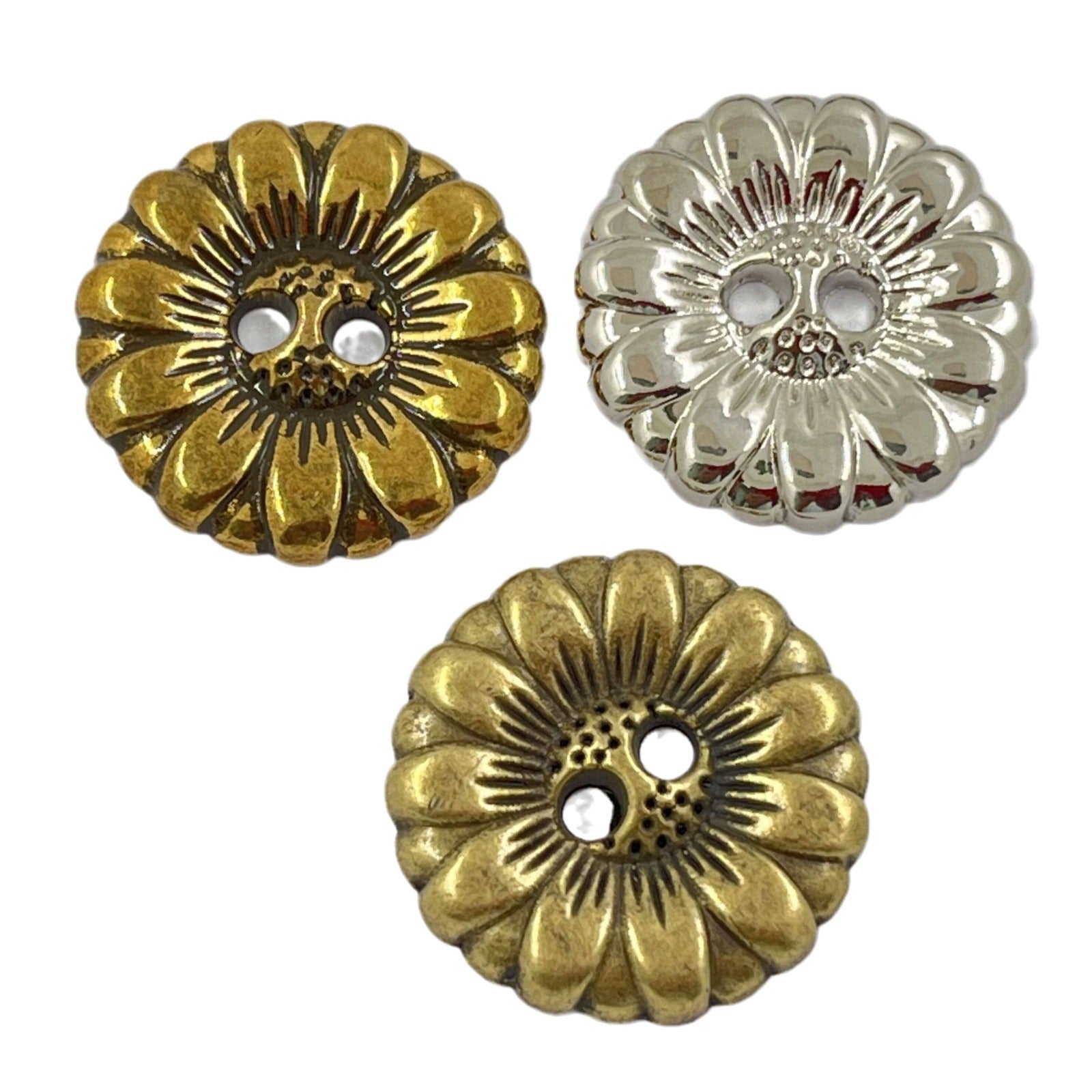 Confecționați din metal durabil, acești nasturi sunt atât funcționali, cât și decorativi, fiind ideali pentru o varietate de țesături și stiluri. Designul cu două găuri asigură o coasere ușoară și o fixare sigură, în timp ce motivul cu floarea-soarelui adaugă un element vesel și botanic creațiilor tale.