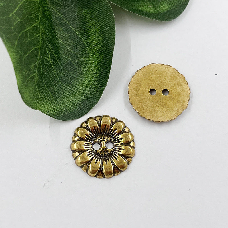 Nasturi de cusut cu două găuri, floarea-soarelui, bronz antic, pachet de 120 bucăți