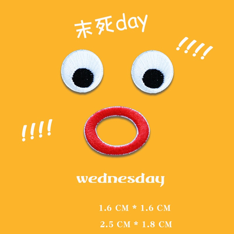 Set de 7 patch-uri brodate autoadezive cu emoji cu ochi mari