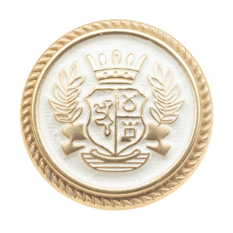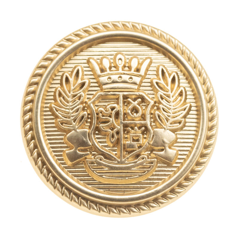 Adaugă o notă de eleganță britanică și farmec regal costumelor tale cu acești uimitori nasturi metalici cu coroana de grâu. Realizați cu precizie și atenție la detalii, acești nasturi sunt concepuți să atragă privirile.