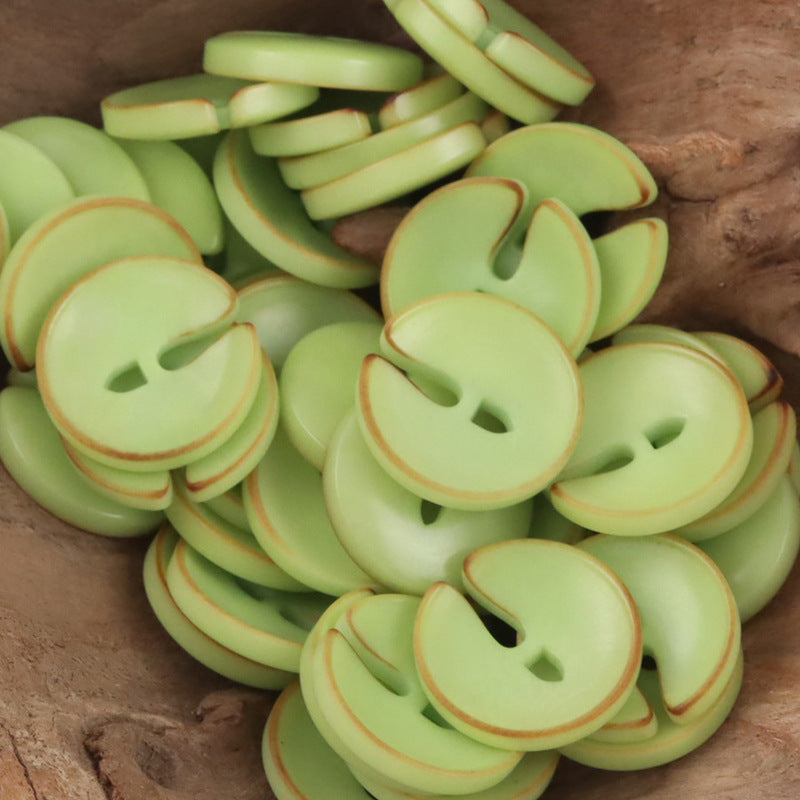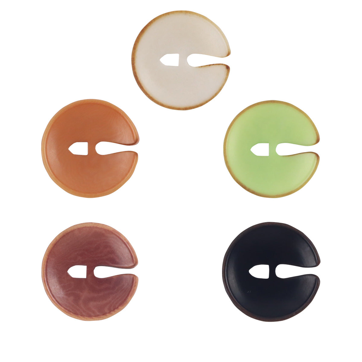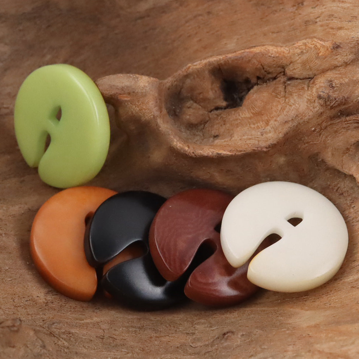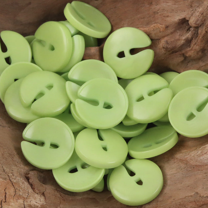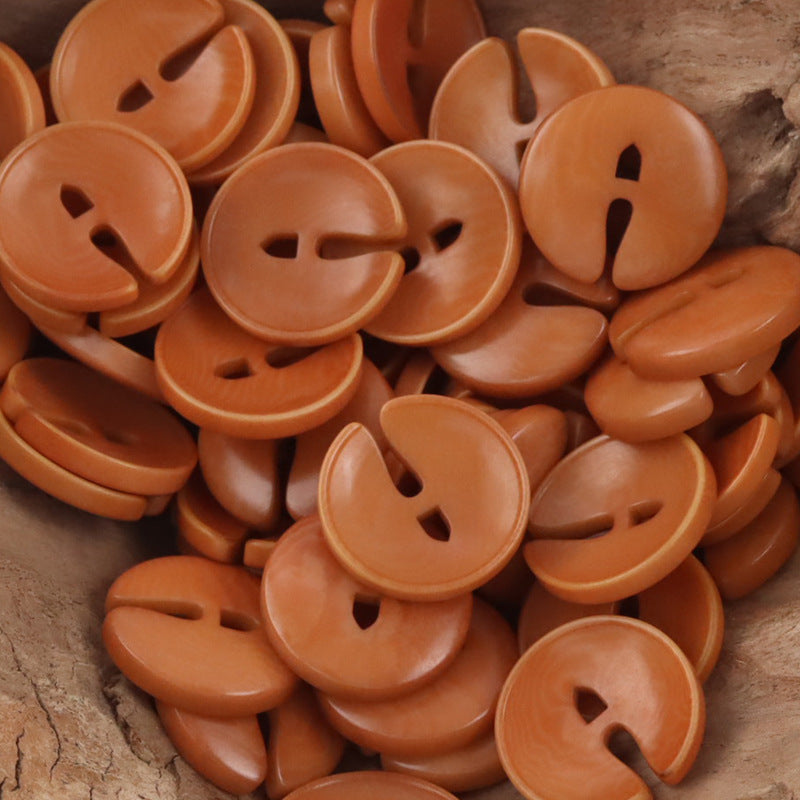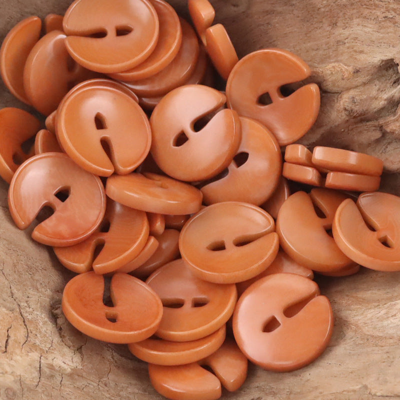 Acești nasturi naturali din nucă tagua sunt proiectați într-o formă drăguță de bol, amintind de popularul personaj "Pac-Man". Forma lor unică îi face să iasă în evidență și adaugă o notă jucăușă oricărei haine pentru copii sau proiecte DIY. Textura naturală a fructului de palmier le sporește farmecul, oferind o senzație rustică și pământească.