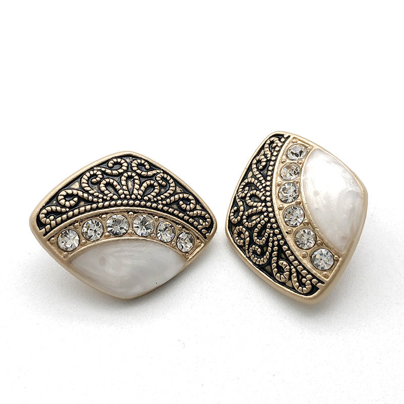 Adaugă o notă exotică și luxoasă designurilor tale cu nasturele nostru Exotic Diamond-Inlaid Pearl Metal Shank. Acest nasture uimitor prezintă un design unic cu incrustații strălucitoare asemănătoare diamantelor și un accent delicat de perlă, creând un aspect sofisticat și artistic. Perfect pentru a îmbunătăți hainele, accesoriile și proiectele de creație, adaugă o piesă statement creațiilor tale.