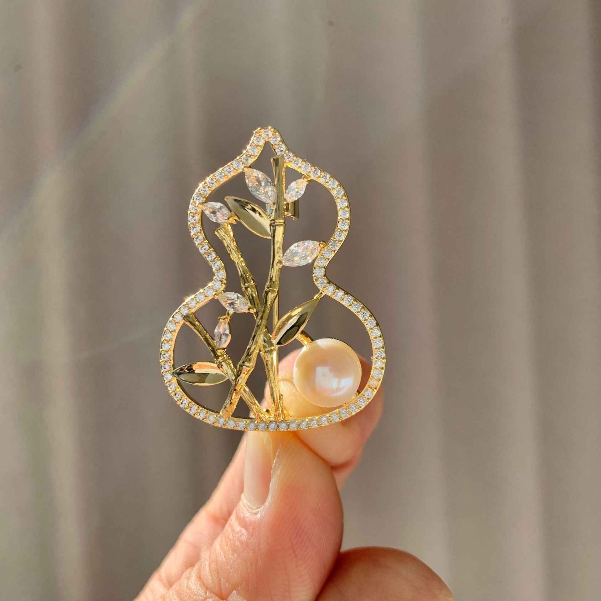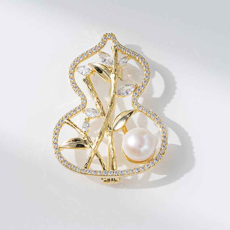 Brosa de bambus cu dovleac, perle de apă dulce, zirconiu și cupru de lux franțuzesc