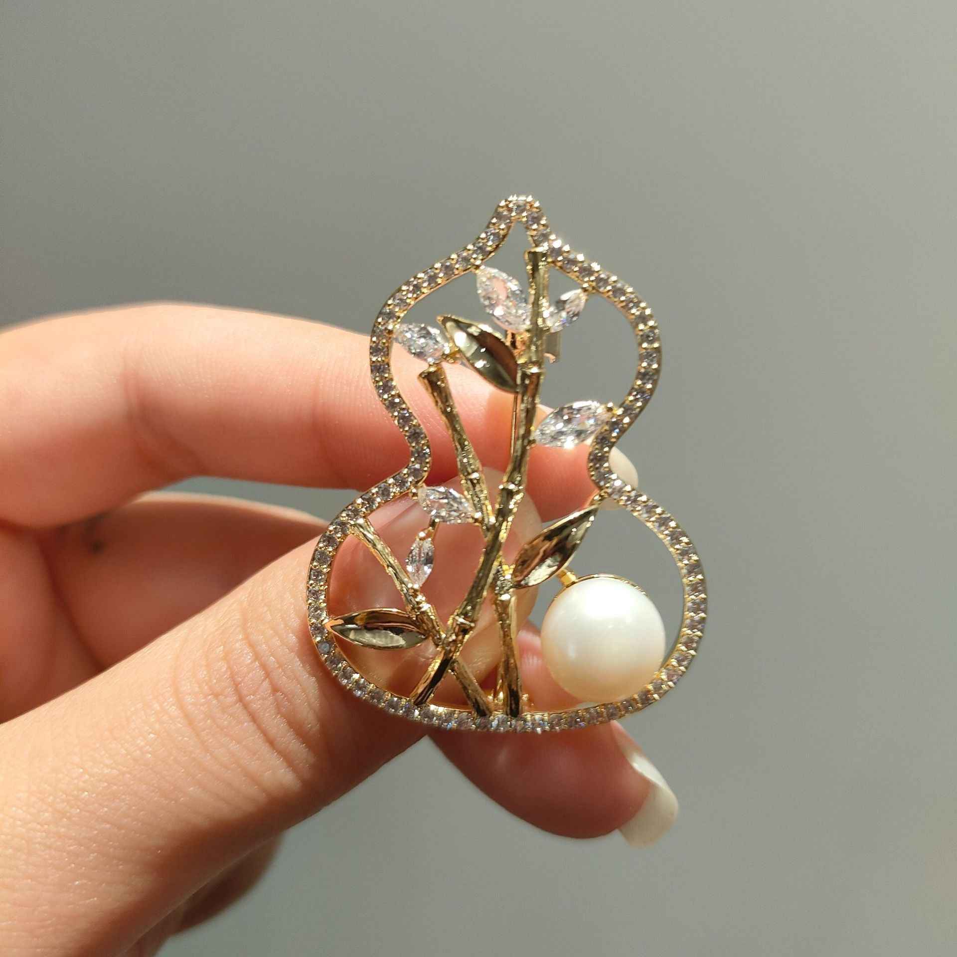 Îmbunătățește-ți stilul cu Brosa noastră de lux franțuzească din bambus și dovleac, o capodoperă a eleganței și măiestriei. Această ace rafinată prezintă un design delicat de bambus și dovleac, realizat din cupru premium și împodobit cu pietre zirconiu strălucitoare și perle de apă dulce lucioase. Combinația de motive naturale și materiale luxoase creează un accesoriu atemporal, perfect pentru paltoane, sacouri, rochii sau eșarfe. Fie pentru un eveniment formal, fie pentru purtarea zilnică, această broșă adaugă o notă de sofisticare și artă oricărei ținute. Confecționată manual cu o atenție meticuloasă la detalii, este, de asemenea, un cadou ideal pentru cei care apreciază bijuteriile rafinate, inspirate de natură. Îmbrățișează șic-ul franțuzesc cu această broșă uimitoare astăzi!