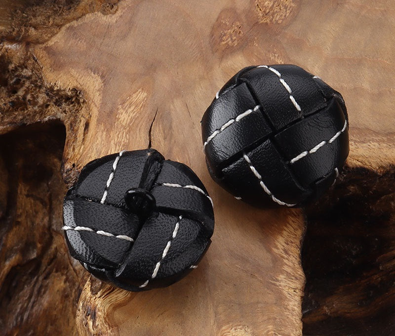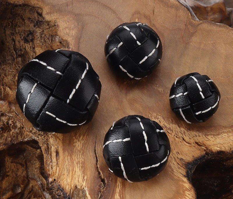 Nasturi de fotbal din piele naturală cusută manual cu fir negru, 15 - 25mm - Nasturi pentru costume și paltoane retro din lână de înaltă calitate, set de 5 bucăți