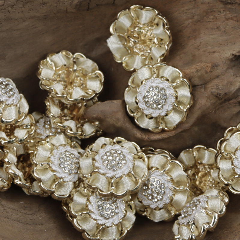 Nasturi decorativi metalici cu pietre strălucitoare Hot-Fix lucrate manual Hydrangea, 10 bucăți