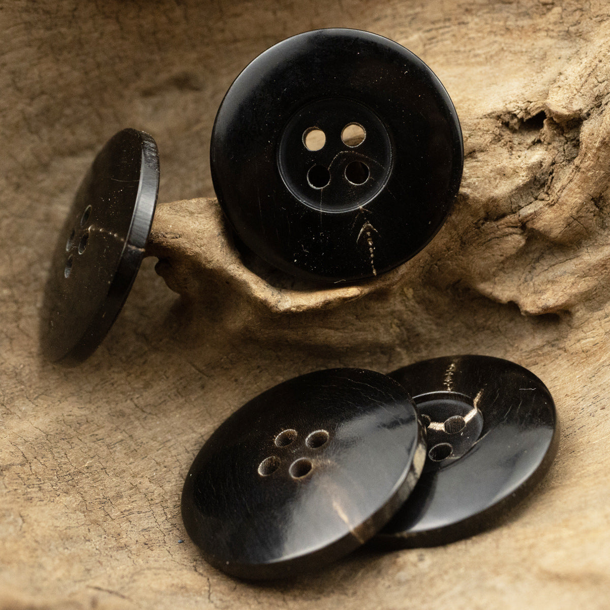 Nasturi mari din corn natural negru de 28mm pentru paltoane groase de lână 6 bucăți