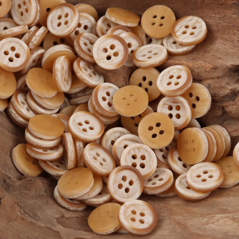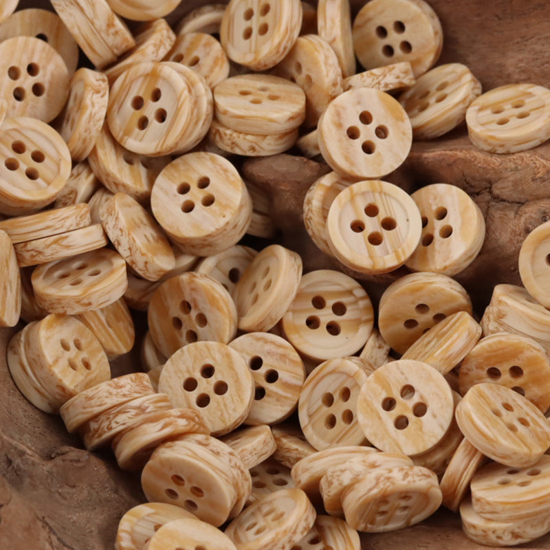 Textura cu model de lemn conferă nasturilor un aspect rustic și pământesc, ca și cum ar fi fost creați din lemn adevărat. Această textură unică nu doar adaugă interes vizual, ci și un sentiment de autenticitate și măiestrie. Fiecare nasture este ca o mică operă de artă, cu propriul său model individual de fibră de lemn, făcând fiecare piesă de îmbrăcăminte împodobită cu ei cu adevărat specială.