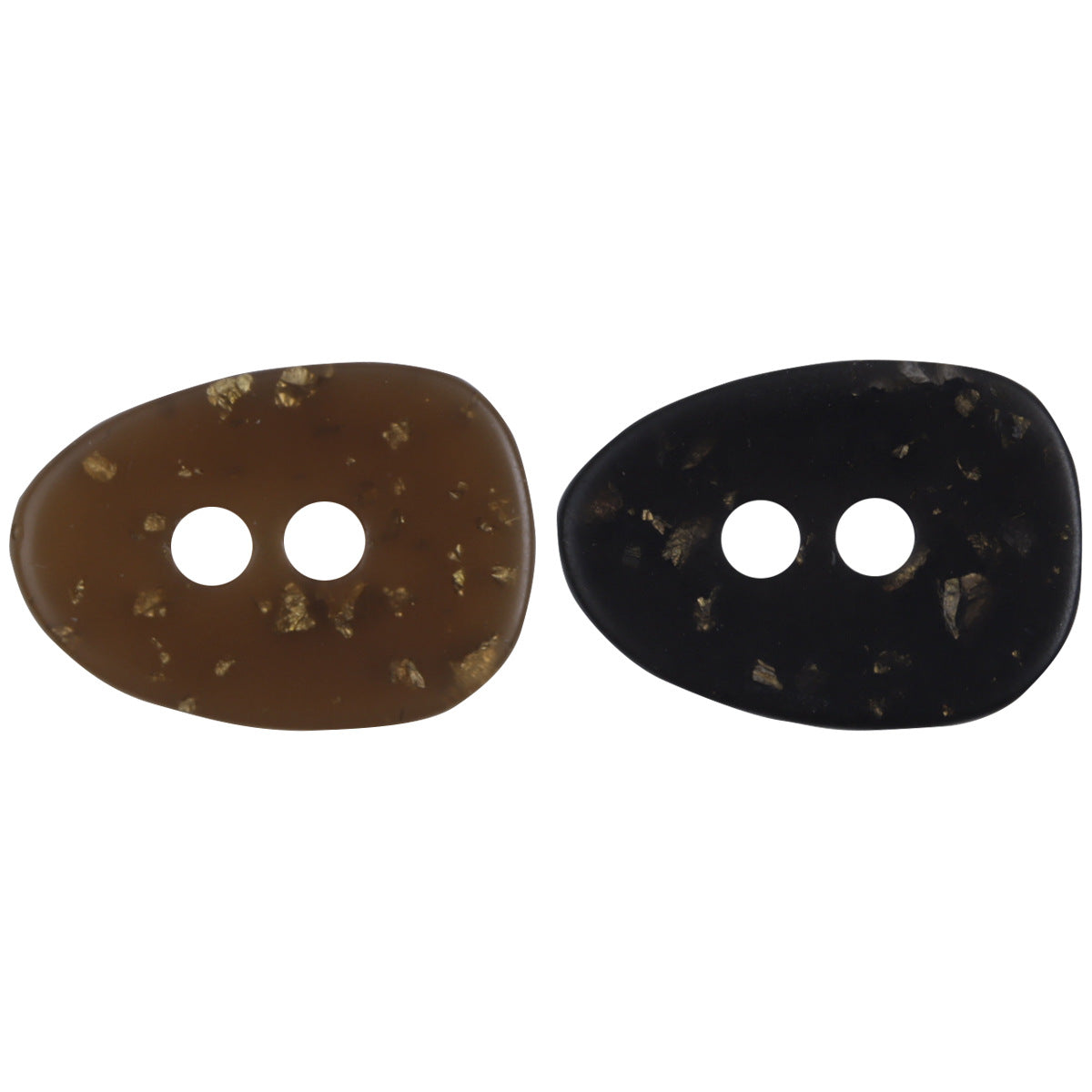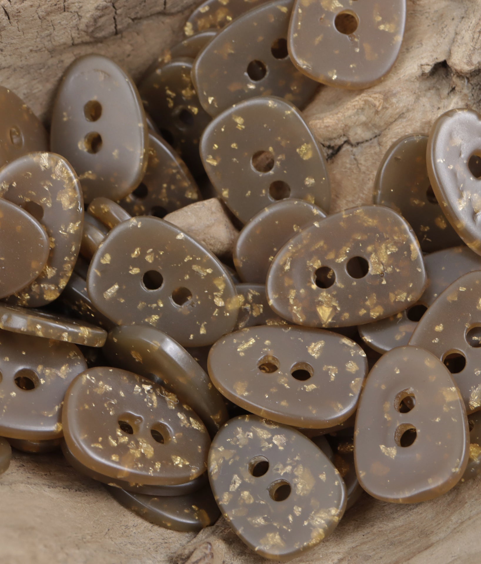 Nasturi lungi ovali cu 2 găuri din rășină maro cu textură de folie aurie și nuanță pământie - Perfect pentru jachete din nurcă - 30BUC