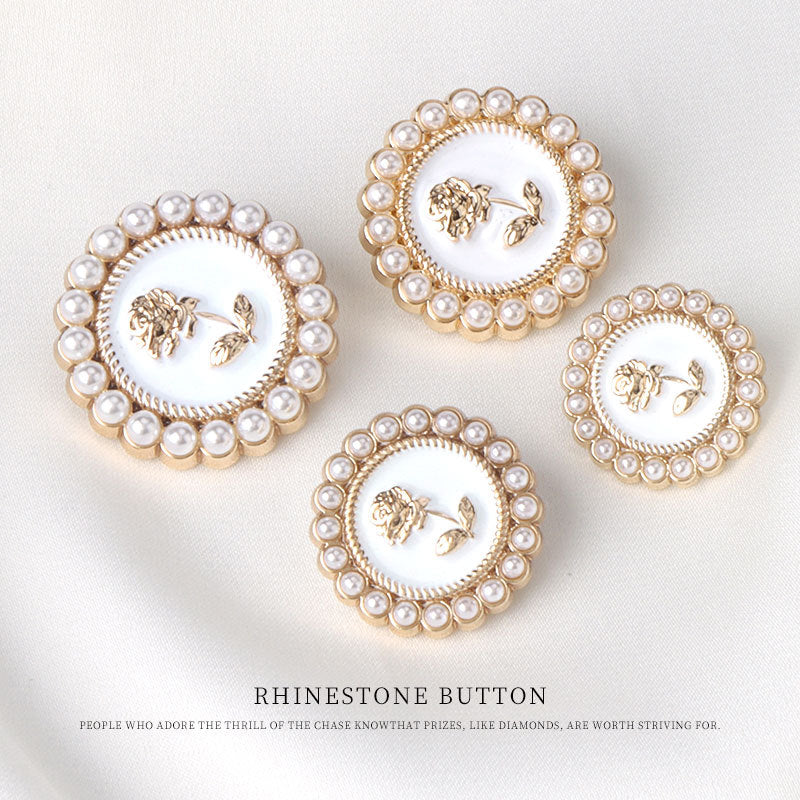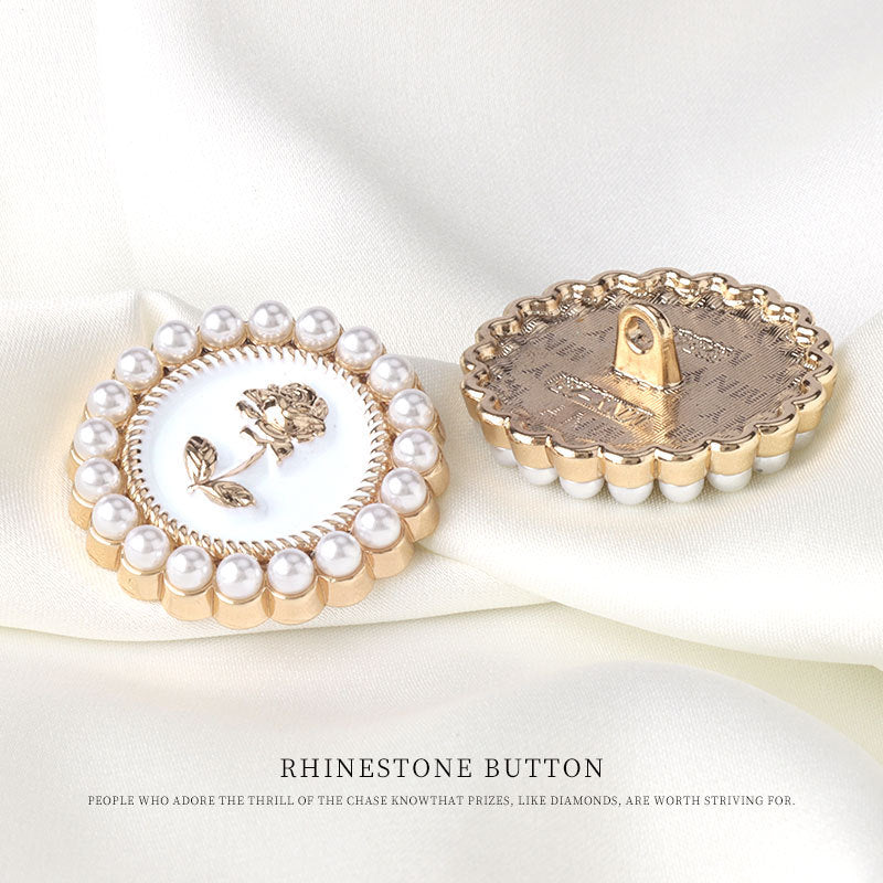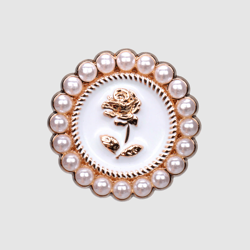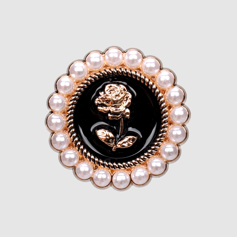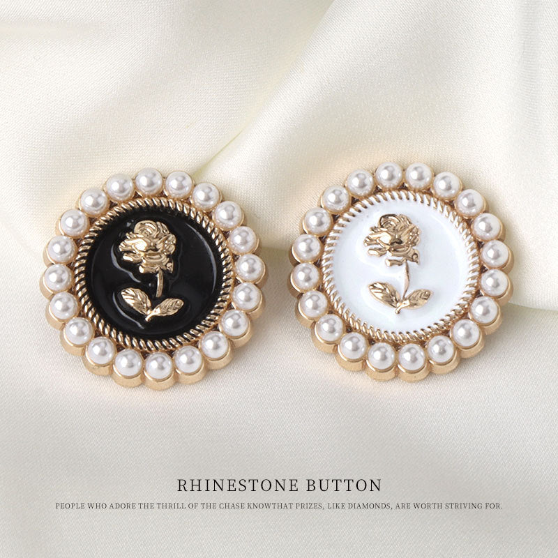 Set de 12 nasturi metalici cu trandafir și perle, albi și negri, cu finisaj uleiat, pentru sacouri de damă (2 culori)