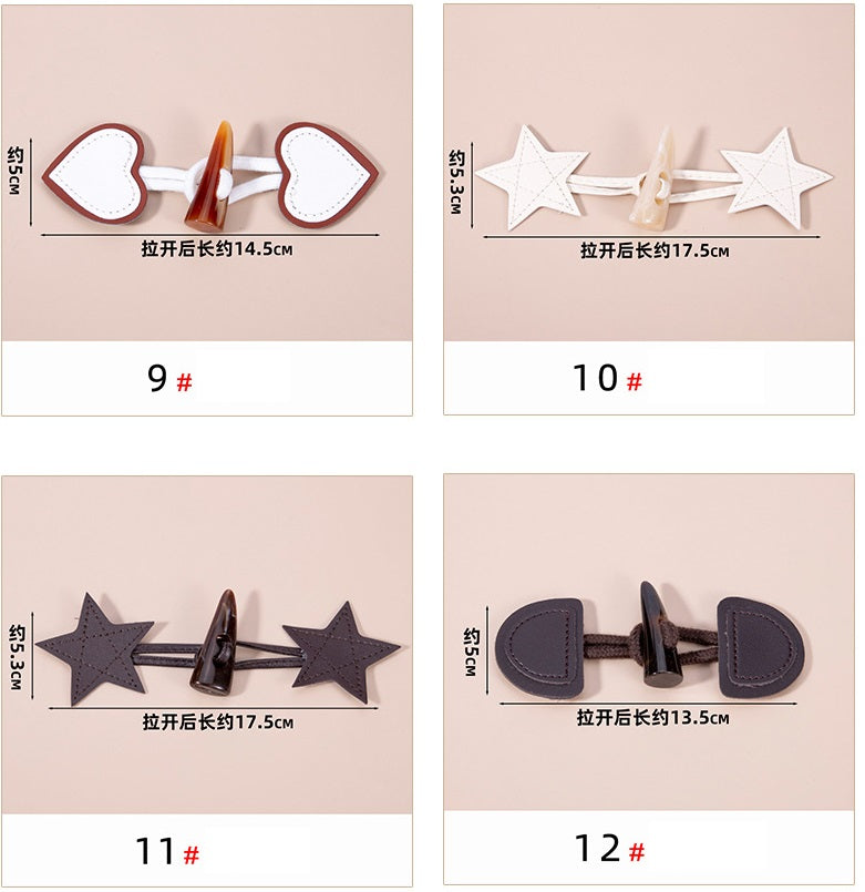 Buton din piele naturală în formă de inimă retro cu toggle din corn de rășină, set de 12 bucăți