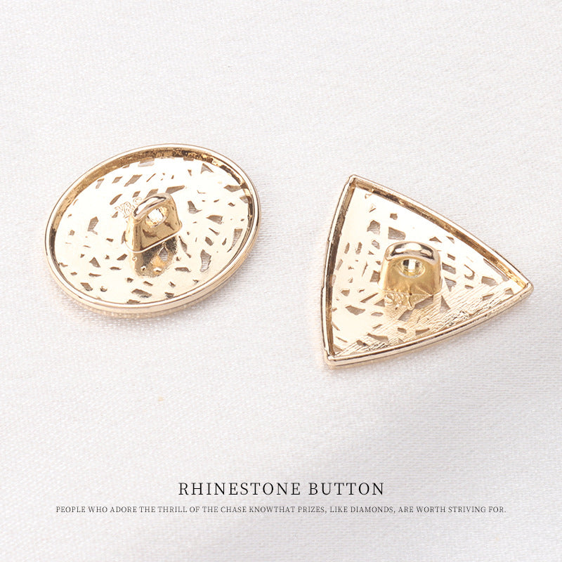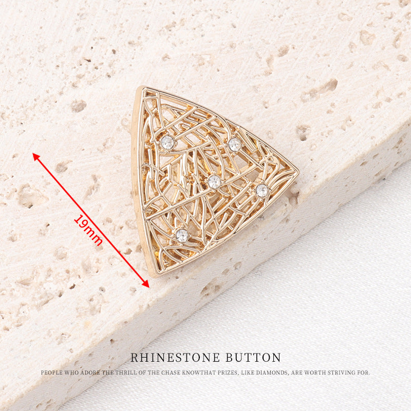 Acești nasturi de 19/20mm sunt o alegere elegantă atât pentru sacouri, cât și pentru pulovere. Culoarea auriu-roz le conferă un aspect luxos și la modă, adăugând o notă de sofisticare. Nasturii sunt fabricați din metal de înaltă calitate, asigurând durabilitate. Forma unică de triunghi oval îi face să iasă în evidență față de cei obișnuiți. Designul decupat nu doar reduce greutatea, ci adaugă și o senzație artistică și delicată. Strasurile încrustate sunt punctul de atracție. Ele strălucesc puternic, sporind farmecul general al nasturilor. Fie că este vorba de un sacou formal pentru o ocazie de afaceri sau un pulover confortabil pentru o zi casual, acești nasturi vor îmbunătăți estetica hainelor. Sunt perfecți pentru cei care apreciază detaliile fine și doresc să facă o declarație stilată prin vestimentația lor.