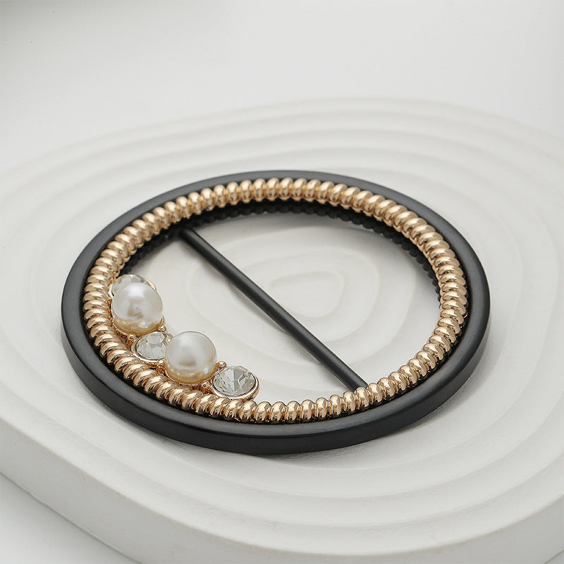 Nasture cu nod pentru tricou din metal negru și auriu cu perle și diamante incrustate, cataramă rotundă pentru talie 2 buc