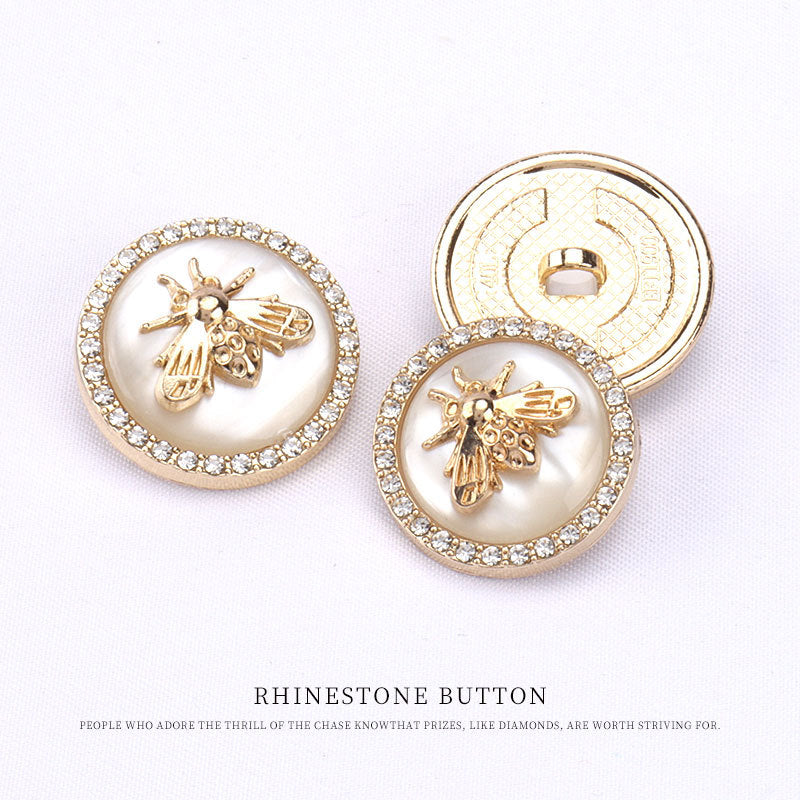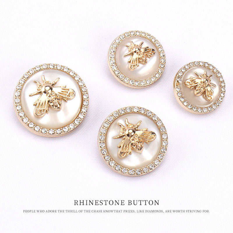 Nasturi rotunzi din rășină metalică în formă de albină cu diamant pentru pulovere și paltoane 12 bucăți
