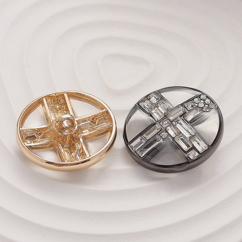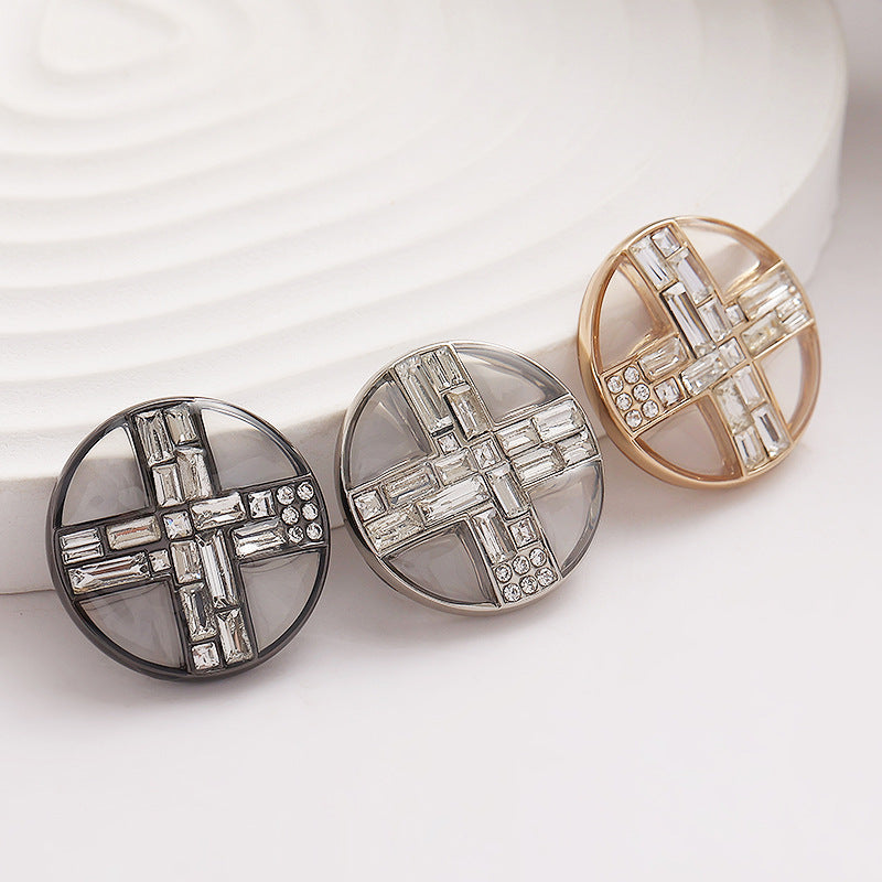 Nasturi metalici rotunzi transparenți cu diamant în formă de cruce, 3 bucăți