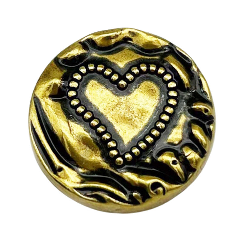 Buton metalic rotund vintage inimă cu margine ondulată, 12 bucăți