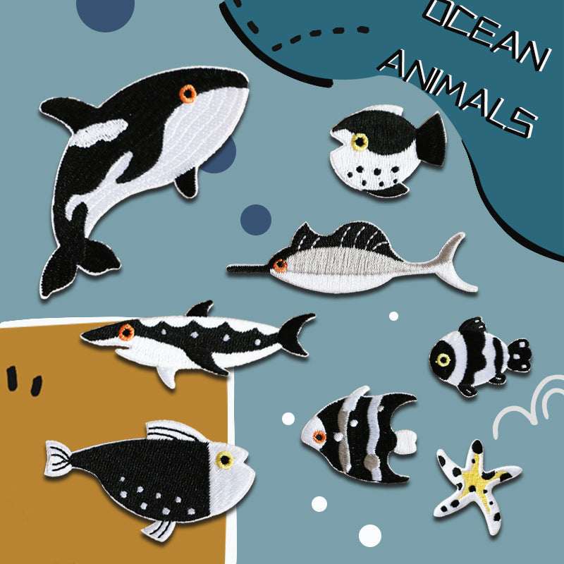 Set de 8 bucăți de patch-uri brodate autoadezive cu animale marine oceanice