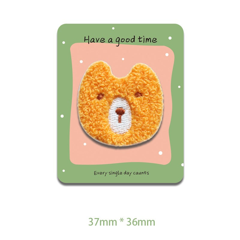 Set de 6 bucăți de patch-uri brodate cu cap de animal de pluș autoadezive, în stil desen animat