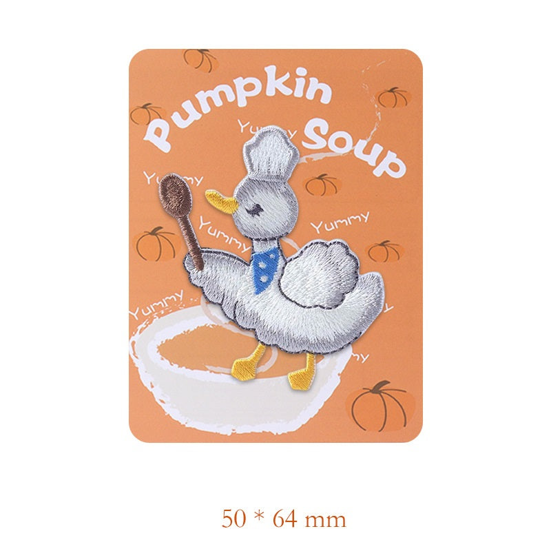 Patch-uri brodate autoadezive cu supă de dovleac, iepure, rață, veveriță, set de 4 bucăți