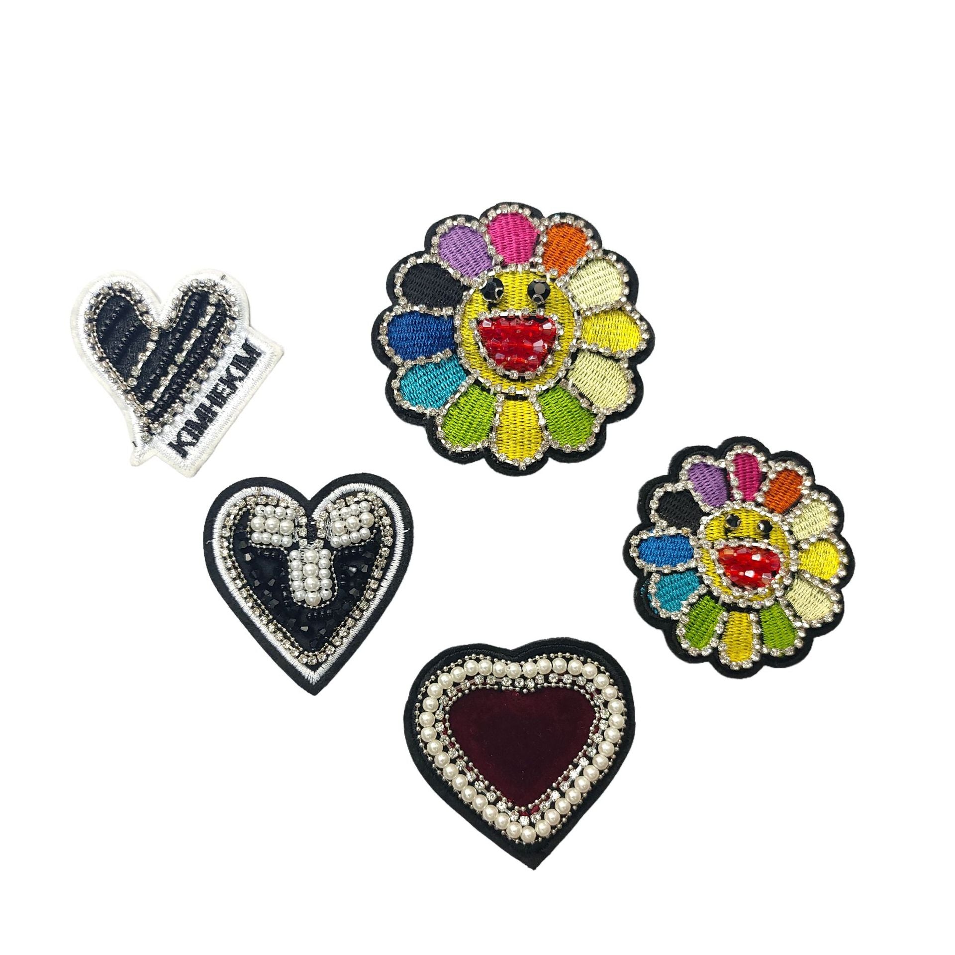 Patch-uri brodate cu floarea-soarelui și inimă cu accente de cristal, pachet de 10 (5 stiluri)