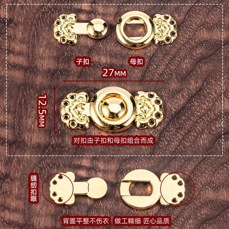 Experimentează esența măiestriei tradiționale chinezești cu butonii noștri tradiționali chinezești din metal cu închizătoare. Acești butoni sunt concepuți să întruchipeze grația și eleganța Hanfu și Cheongsam, având o formă clasică de disc cu un mecanism sigur de blocare care amintește de vechile costume chinezești.