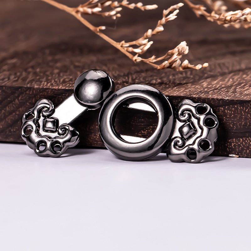 Butonii noștri tradiționali chinezești din metal cu închizătoare sunt perfecți pentru cei care doresc să adauge o piesă de istorie în moda lor. Cu designul lor atemporal și construcția robustă, acești butoni sunt o alegere la modă pentru a îmbunătăți stilul oricărui articol vestimentar tradițional sau modern. Adaugă o notă de eleganță chineză ținutei tale cu acești butoni excepționali chiar azi.