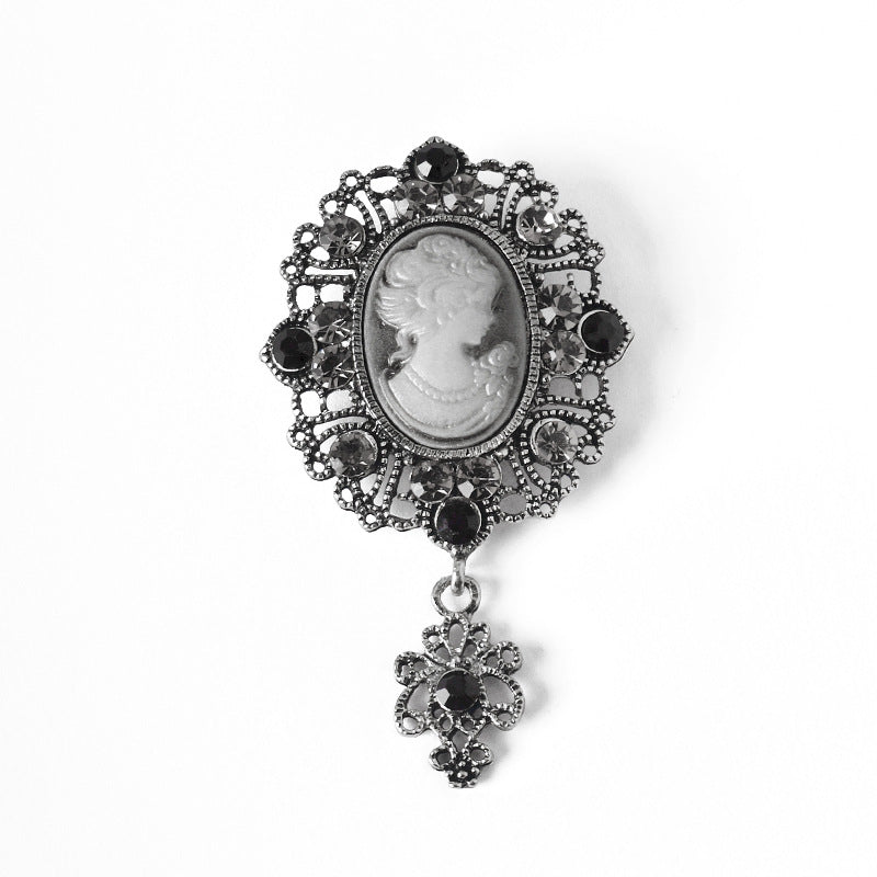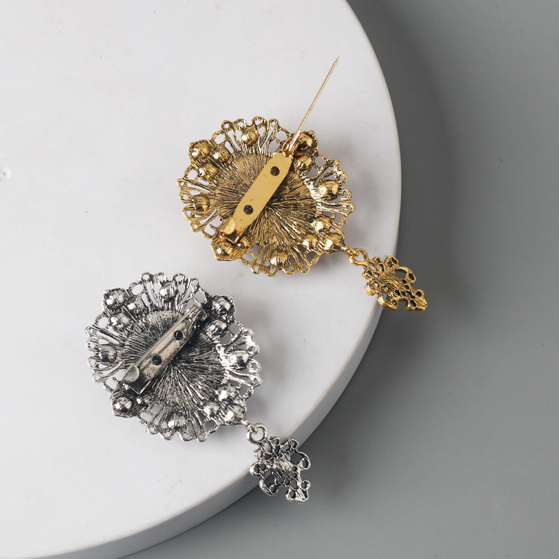 Brosă vintage din metal cu relief pentru regină, cu strasuri, set de 2 (auriu și argintiu)