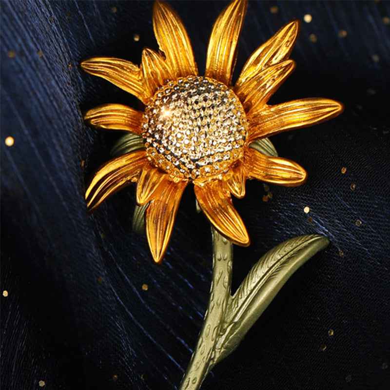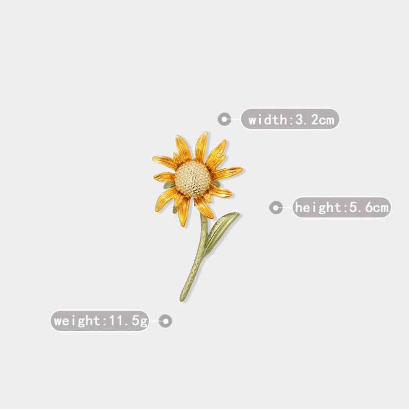 Adaugă un strop de farmec vintage stilului tău cu Brosa Vintage Floarea-soarelui! Această broșă frumos lucrată prezintă un design vibrant cu floarea-soarelui, cu petale bogat emailate care imită căldura și strălucirea unei grădini de vară. Perfectă pentru accesorizarea paltoanelor, jachetelor, eșarfelor, pălăriilor sau genților, această broșă este o piesă versatilă de impact pentru orice sezon. Designul său inspirat retro se potrivește fără efort atât cu ținutele casual, cât și cu cele formale, făcând-o un accesoriu indispensabil pentru pasionații de modă. Fie că te pregătești pentru un eveniment sau adaugi un plus de stil look-ului tău zilnic, această broșă cu floarea-soarelui este o completare atemporală și atrăgătoare pentru colecția ta.