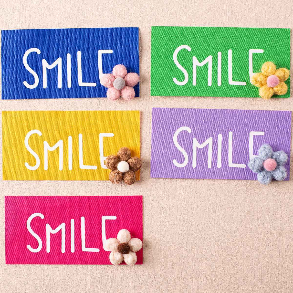 13cm farebná látková nášivka s kvetom a nápisom 'SMILE' na oblečenie a klobúky 10 kusov
