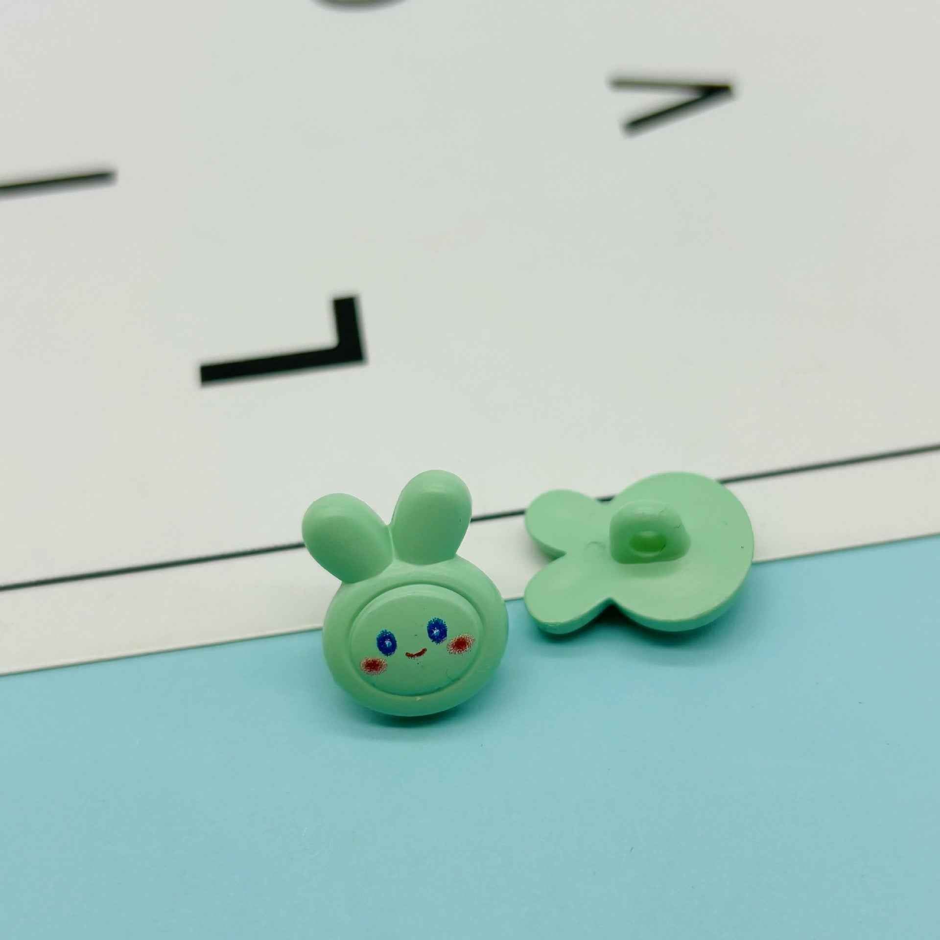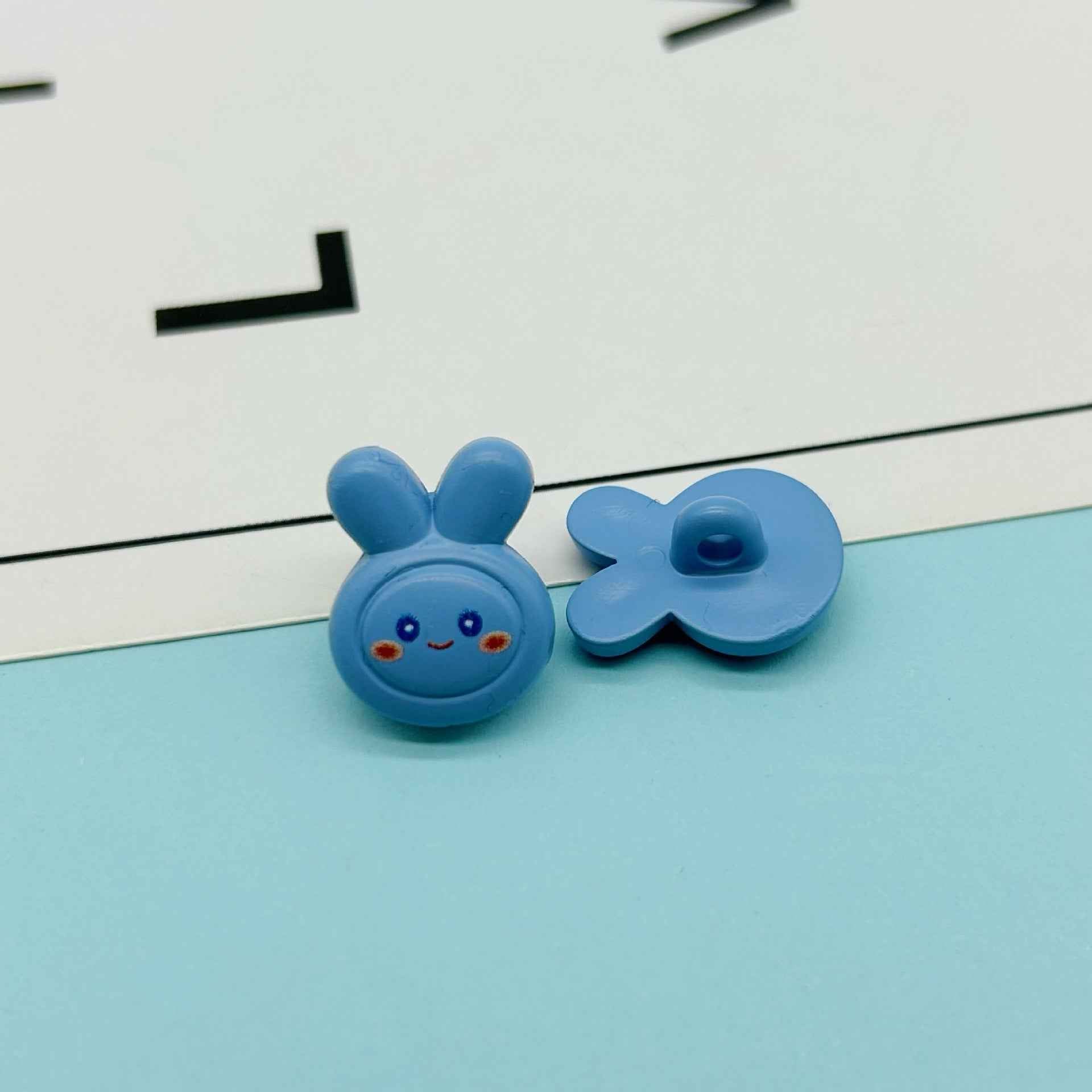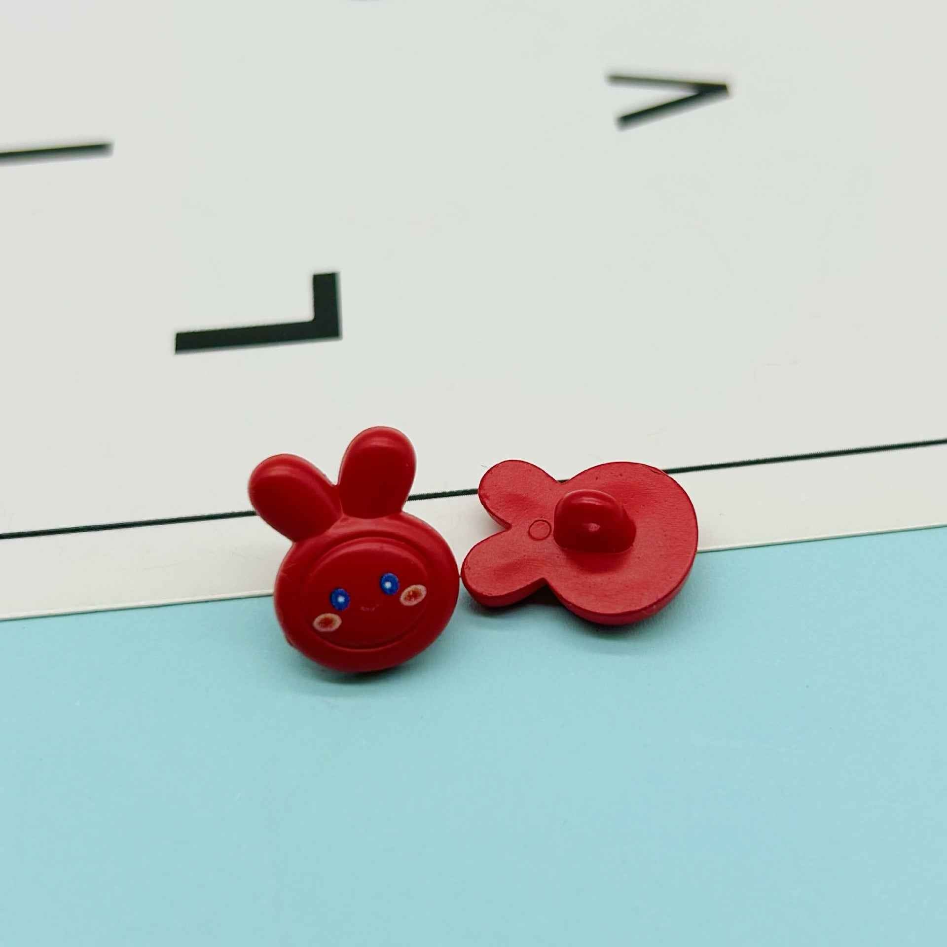 Tieto 18mm plastové gombíky sú navrhnuté v tvare roztomilých kreslených zajacov a sú dostupné v rôznych jasných farbách. Majú očká, čo ich robí ideálnymi pre detské DIY projekty. Deti ich môžu použiť na ozdobenie svojho oblečenia, napríklad prišiť ich na košele alebo bundy, alebo vytvoriť jedinečné doplnky ako náramky či kľúčenky. Gombíky sú vyrobené z odolného plastu, čo zabezpečuje, že vydržia manipuláciu malých rúk. Ich očarujúci dizajn zajaca stimuluje detskú kreativitu a predstavivosť, umožňuje im vyjadriť svoju individualitu a zabaviť sa pri tvorení.