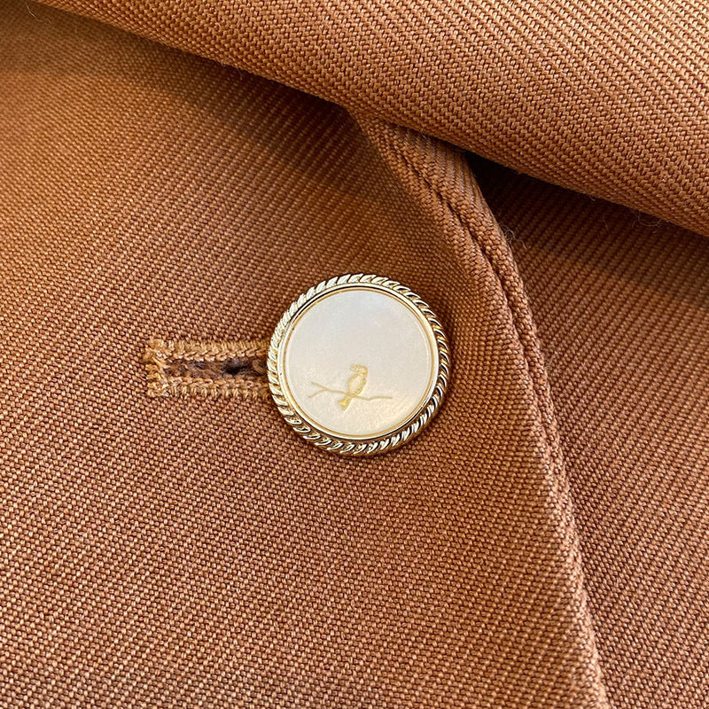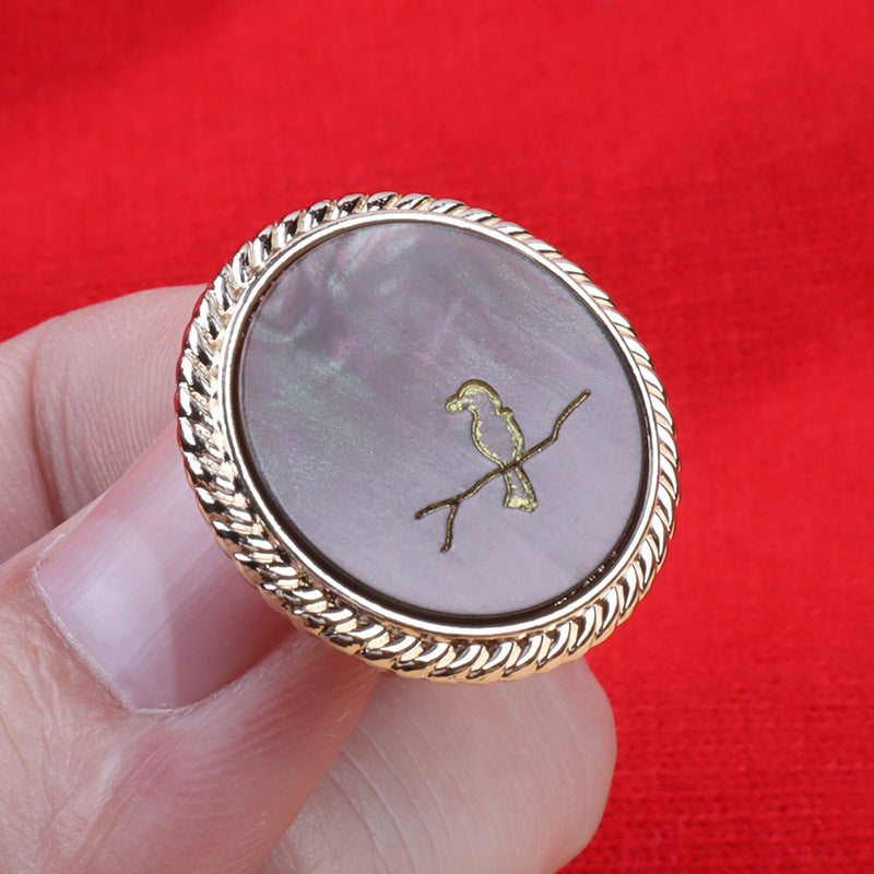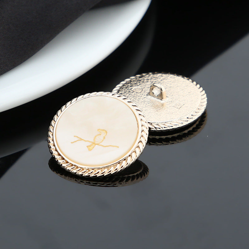 Tieto gombíky s priemerom 18/23/25 mm sú jedinečným a očarujúcim doplnkom každého odevu. Okrúhle gombíky majú pôvabné vzory vtákov, ktoré pridávajú nádych prírody a hravosti. Sú vyrobené zo živice v čiernej, hnedej a béžovej farbe, čo vytvára elegantný a harmonický vzhľad. Špeciálny dizajn spočíva v zlatej alebo striebornej kovovej základni s očkom. Kovová základňa nielenže zabezpečuje odolnosť, ale tiež pridáva luxusný lesk. Očko uľahčuje prišívanie na rôzne látky. Či už ide o štýlový kabát, módnu blúzku alebo útulný sveter, tieto gombíky zvýraznia celkovú estetiku. Sú ideálne pre tých, ktorí radi vkladajú do svojho oblečenia jedinečné a nápadné detaily, vďaka čomu odev skutočne vynikne.