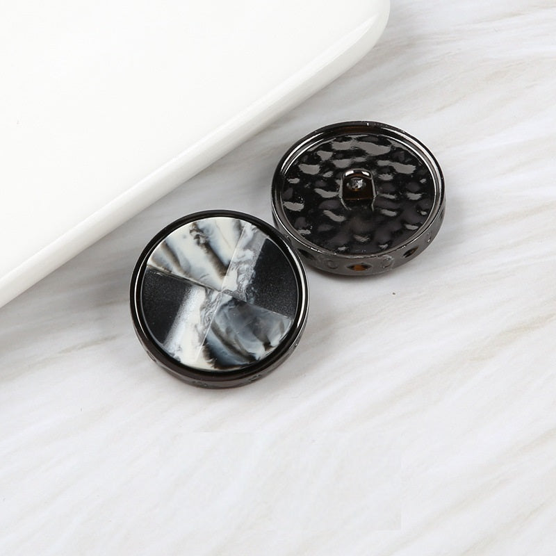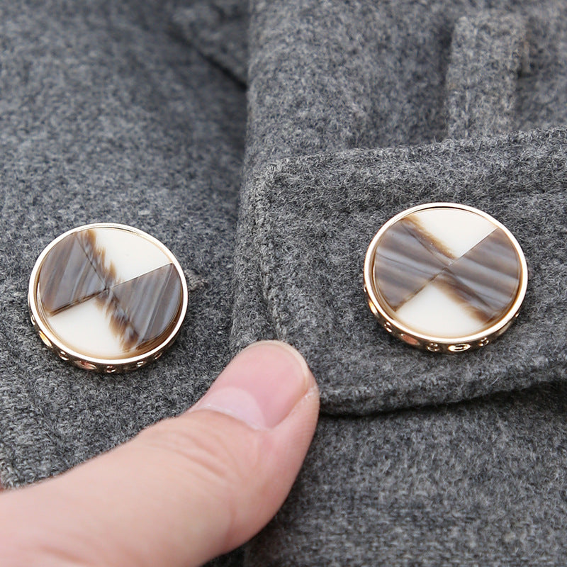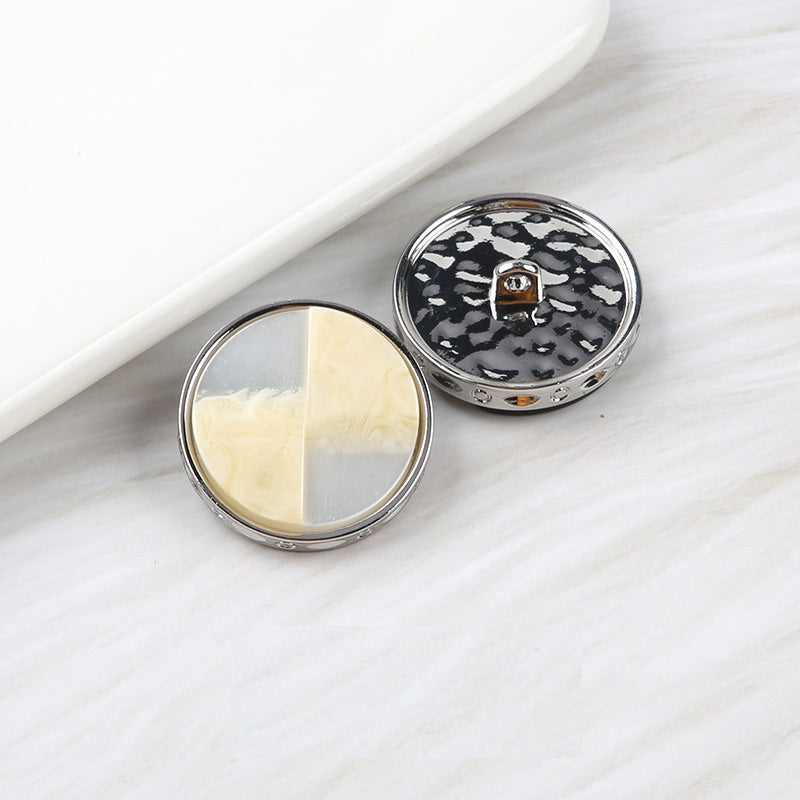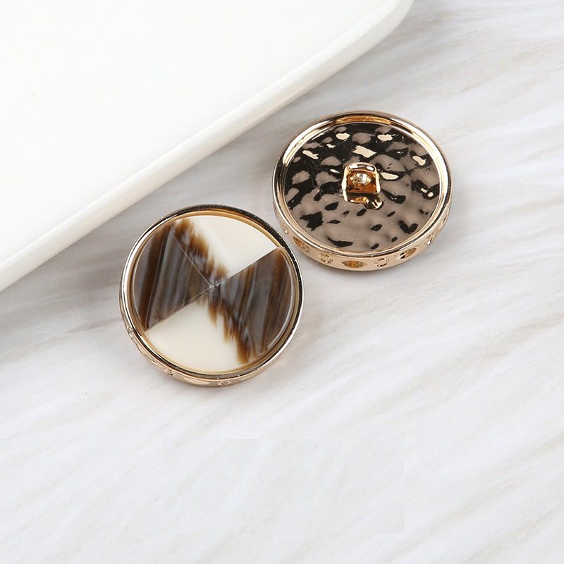 Tieto gombíky s veľkosťami 18/20/23/25mm sú pozoruhodným doplnkom vášho oblečenia. Vyrobené zo živice - kovu, sú zároveň odolné a štýlové. Jedinečný tvar v tvare ventilátora ich odlišuje od bežných gombíkov a pridáva nádych elegancie. Dvojfarebná kombinácia čiernej a hnedej dodáva bohatý a sofistikovaný vzhľad. Kontrast medzi týmito farbami robí gombíky nápadnými. Vďaka očkám sa ľahko prišívajú na rôzne druhy látok. Sú vhodné pre rôzne odevy, ako sú kabáty, bundy a blúzky. Či už smerujete k formálnemu alebo neformálnemu štýlu, tieto gombíky zvýraznia celkový vzhľad vášho oblečenia. Prinášajú pocit luxusu a jedinečnosti, vďaka čomu váš odev vynikne svojím špeciálnym dizajnom.