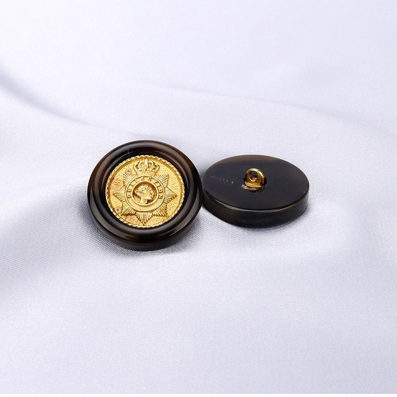 Tieto gombíky s veľkosťou 18/23/25 mm sú vynikajúcou voľbou pre obleky. Kombinácia živice a kovu zaručuje odolnosť a elegantný vzhľad. Gombíky sú dostupné v čiernej, bielej, béžovej a hnedej farbe, čo ponúka všestranné možnosti na zladiť s rôznymi farbami oblekov. Ich vintage dizajn obsahuje vzory v tvare koruny a hviezdy, ktoré pridávajú nádych kráľovskej a tajomnej elegancie. Okrúhly tvar im dodáva klasický vzhľad. Tieto gombíky nie sú len zapínadlá, ale aj dekoratívne prvky, ktoré môžu jednoduchý oblek premeniť na výrazný kúsok. Či už ide o formálny pracovný oblek alebo štýlový večerný oblek, tieto gombíky zlepšujú celkovú estetiku svojou jedinečnou kombináciou retro a luxusných prvkov, vďaka čomu nositeľ vynikne s noblesou.