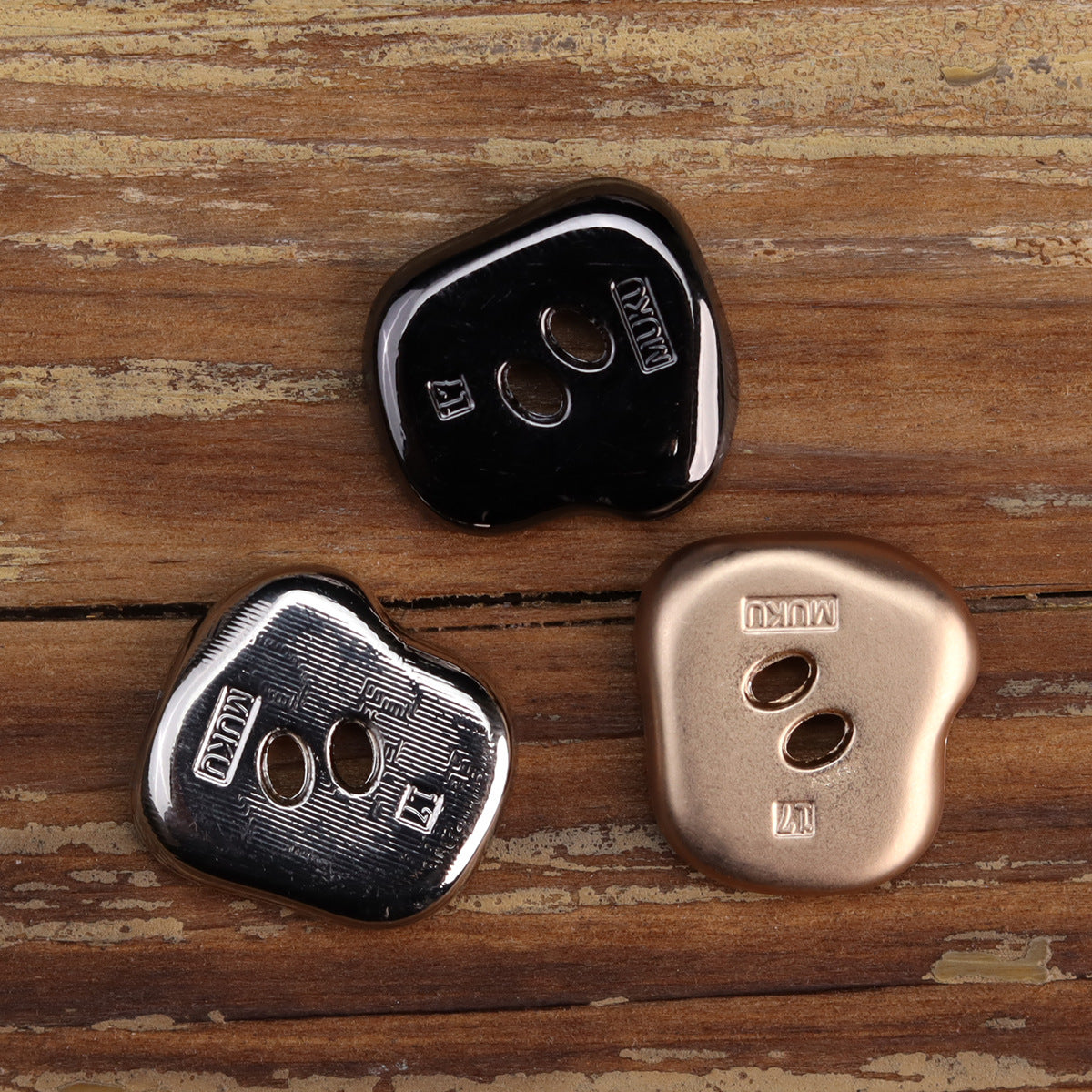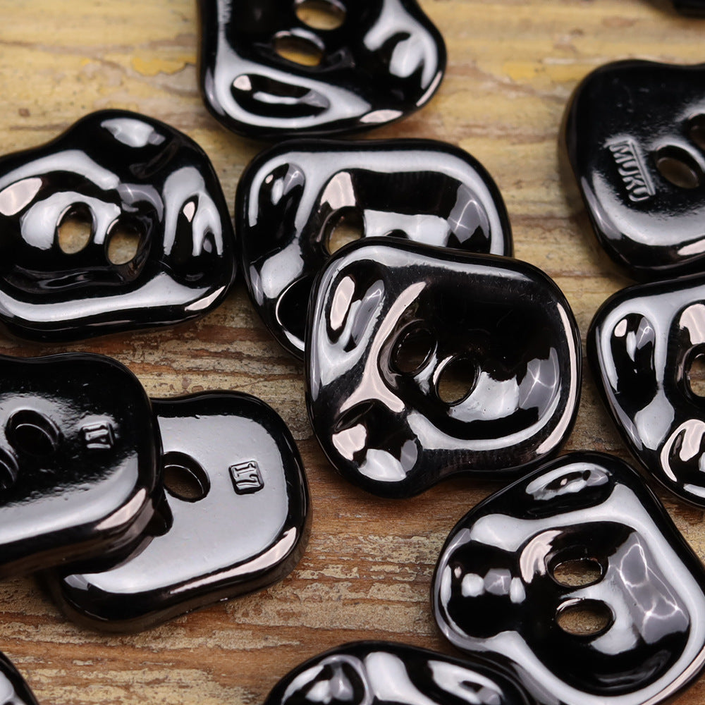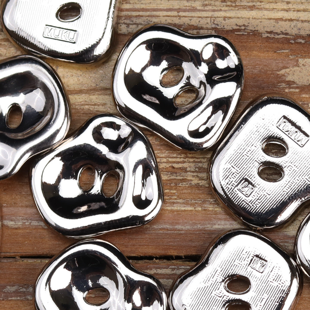 Nepravidelné kovové gombíky v tvare ruky - zliatina zinku, ružové zlato, lesklá strieborná, lesklá čierna, dvojdierkové gombíky na ručné prišívanie na tašky, 12 ks