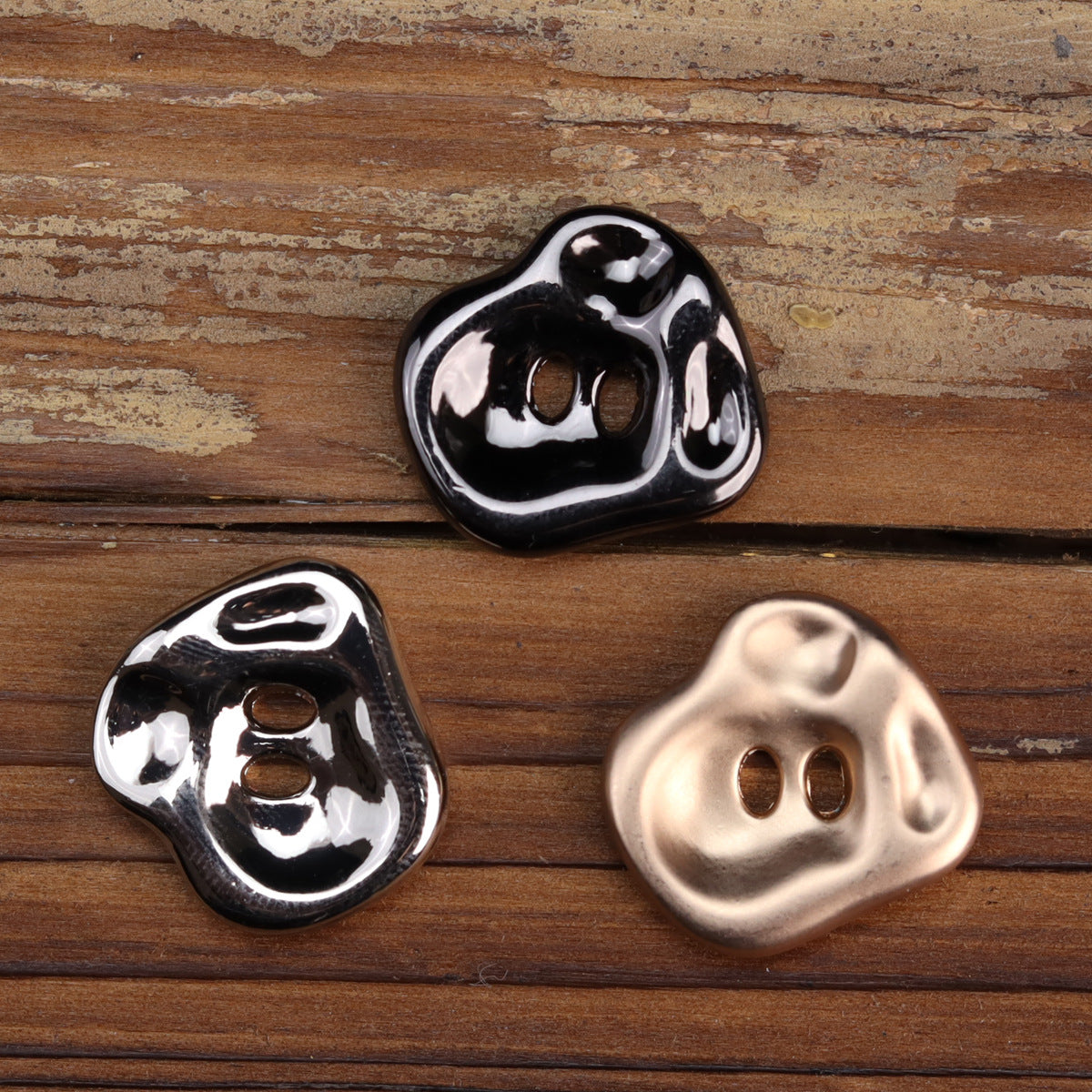 Nepravidelné ružové zlato lesklé strieborné zinkové zliatinové kovové gombíky s 2 dierkami 12 ks