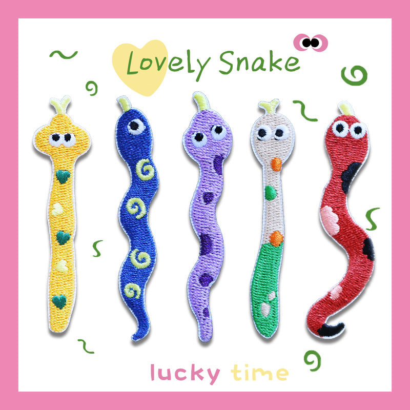 Roztomilé milé nášivky Roku hada 70 mm, 5-farebné balenie