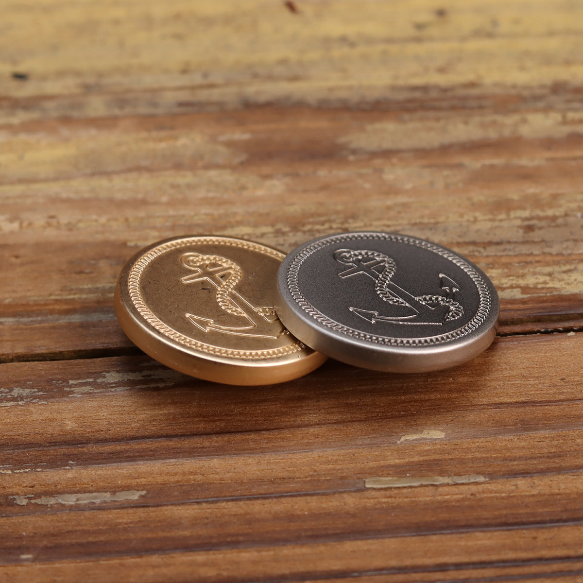 Ružovo zlaté a lesklé strieborné kovové gombíky s kotvou - Nové jarné/letné kovové gombíky na manžety a predné lemy pánskych oblekov 12 ks