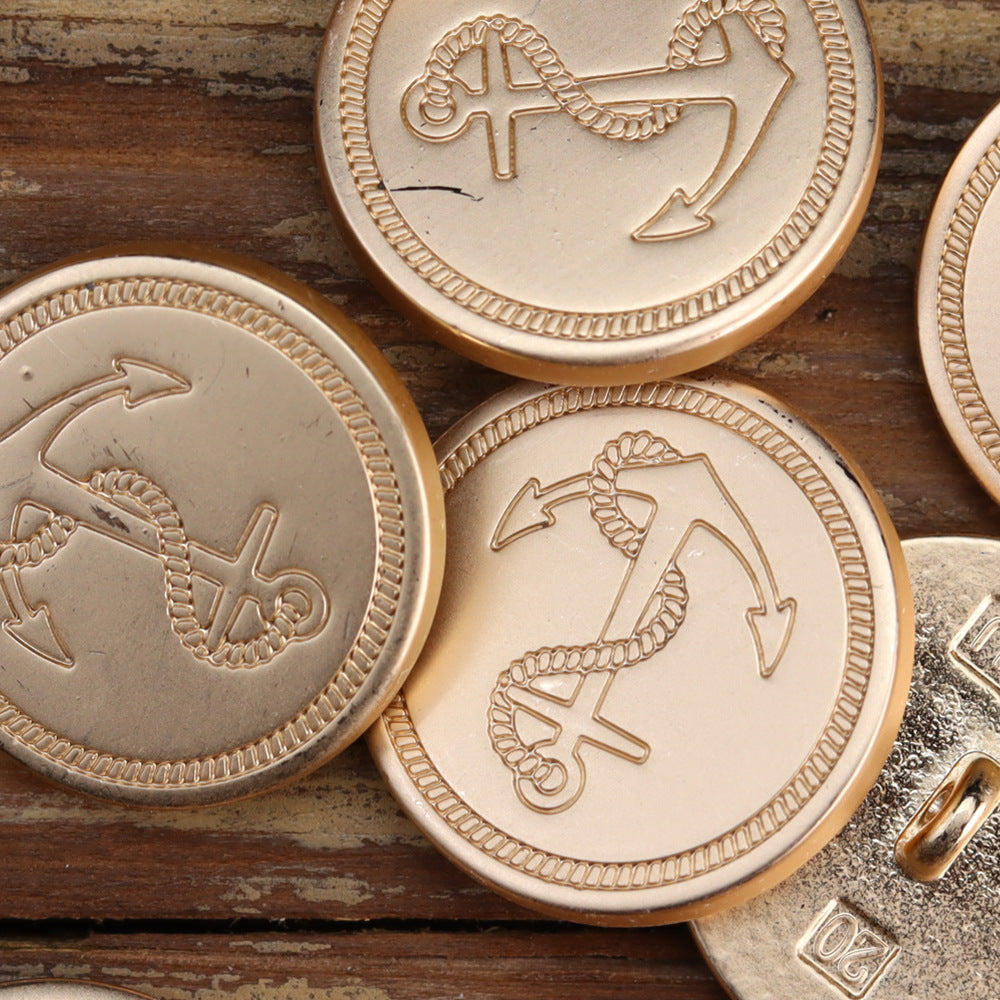 Ružovo zlaté a lesklé strieborné kovové gombíky s kotvou 12 ks