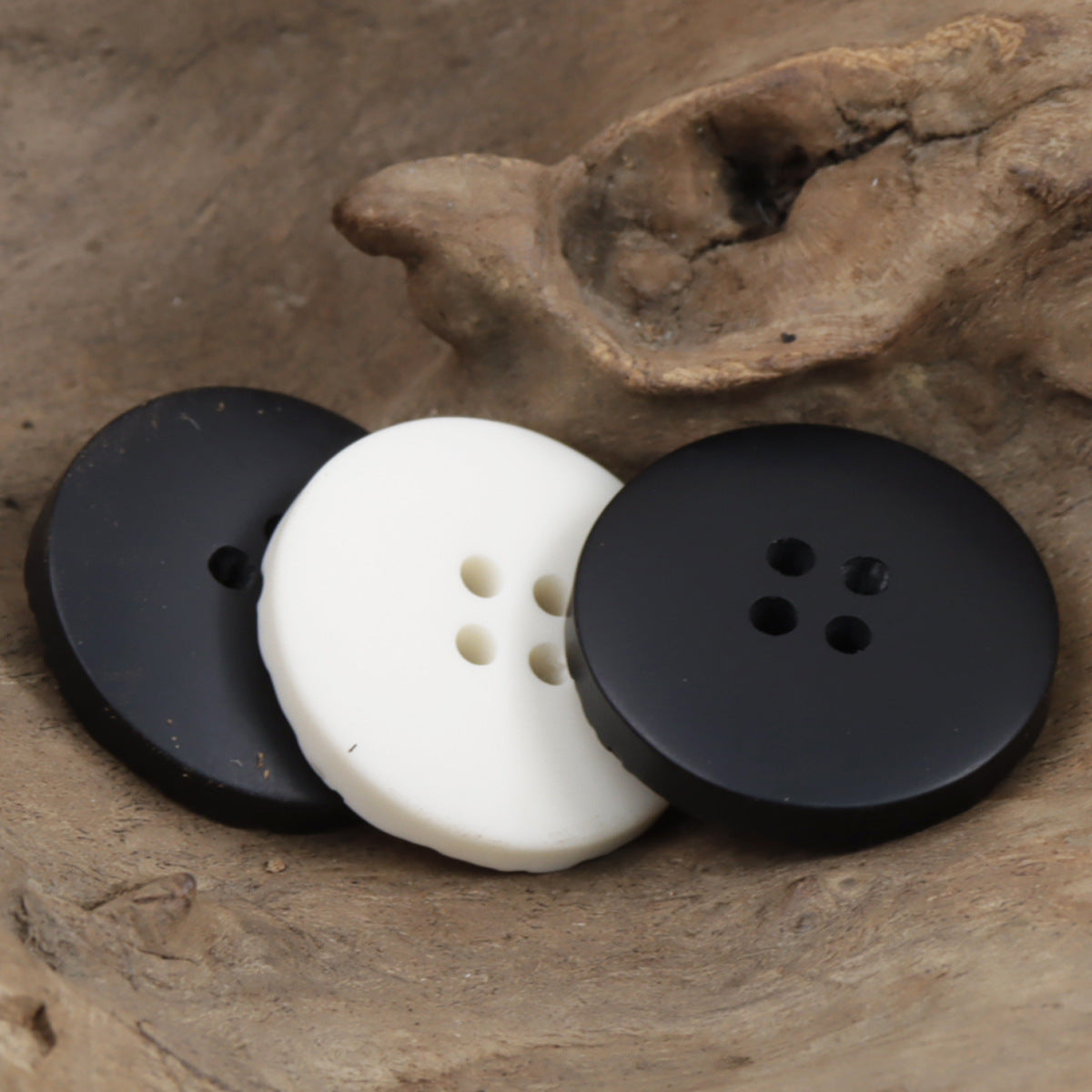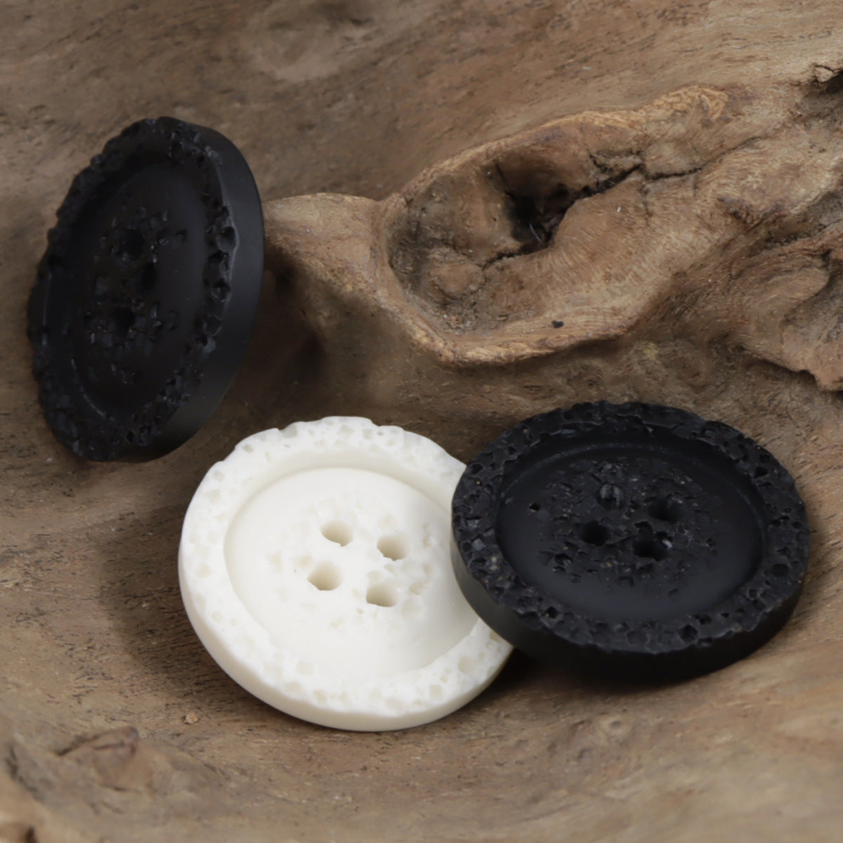 Textúrované čierne a biele gombíky z polyesterovej živice na mikiny 30 ks