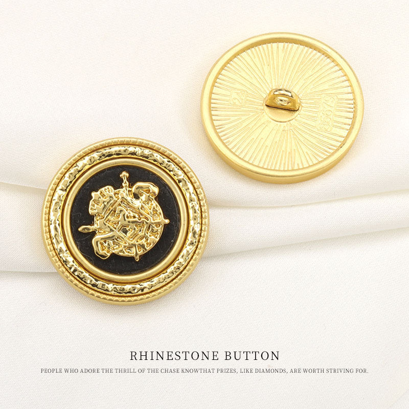Okrogli zlati kovinski gumbi z rhinestoni in dvojni vzorec obroča 6 kosov