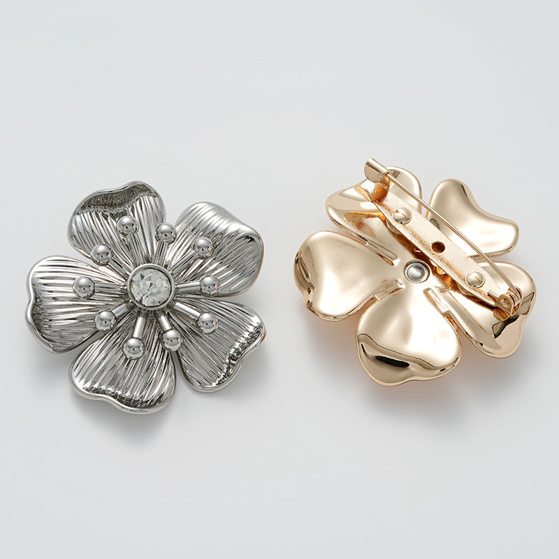 43mm modna broška iz kovine z rožo in kristali za plašč ali obleko, 2 kosa