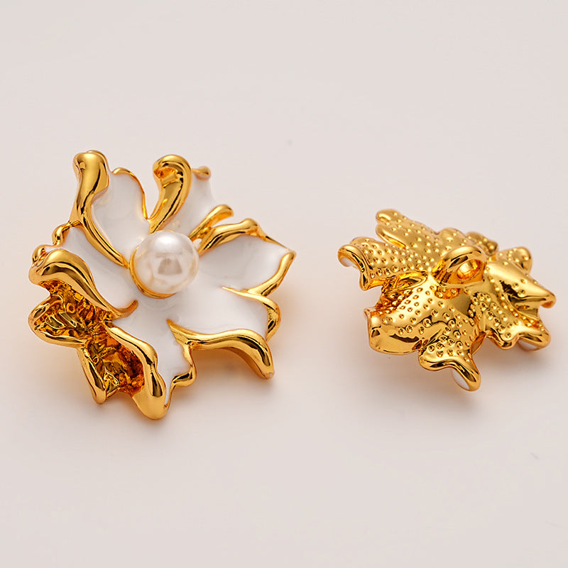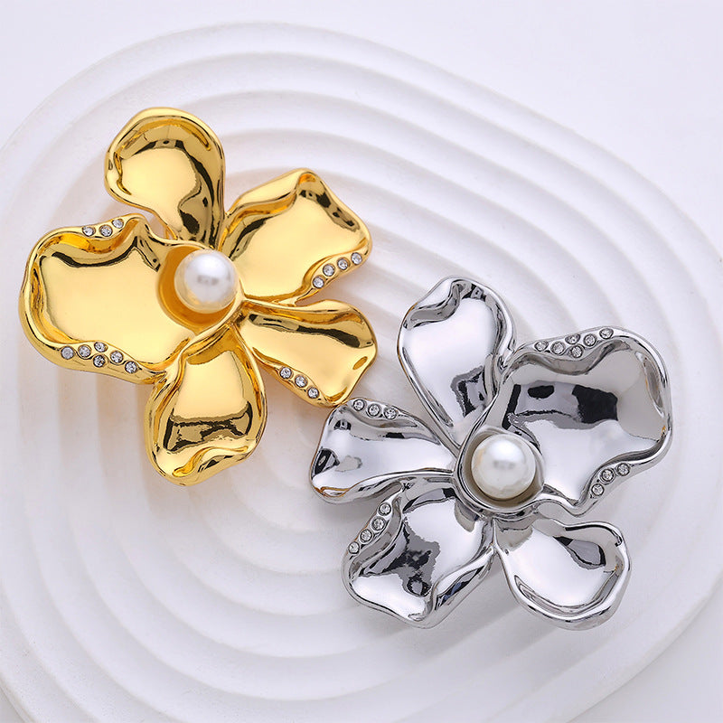 Francoski zlati kromirani broška z biserno rožo 2 kosa