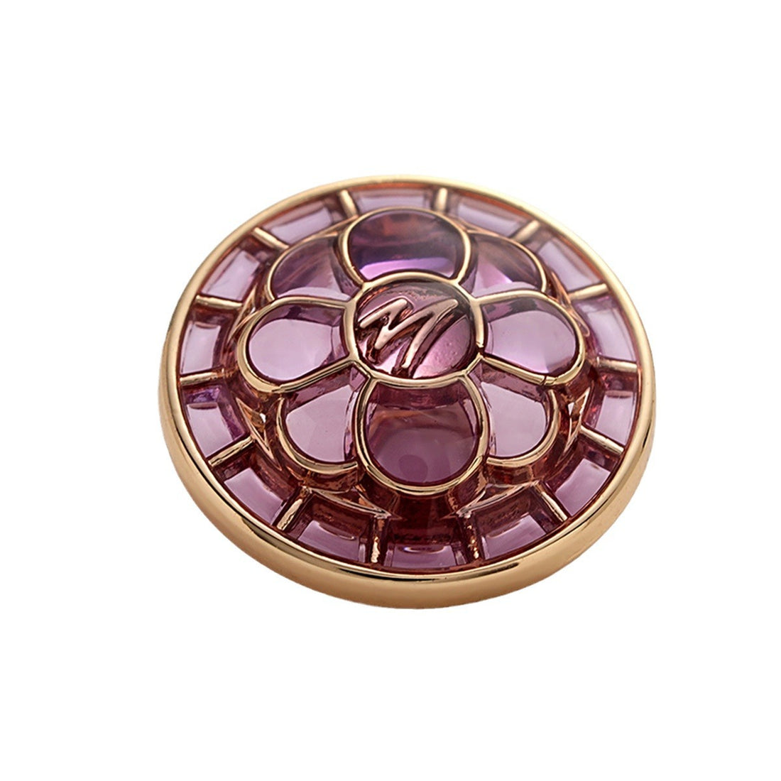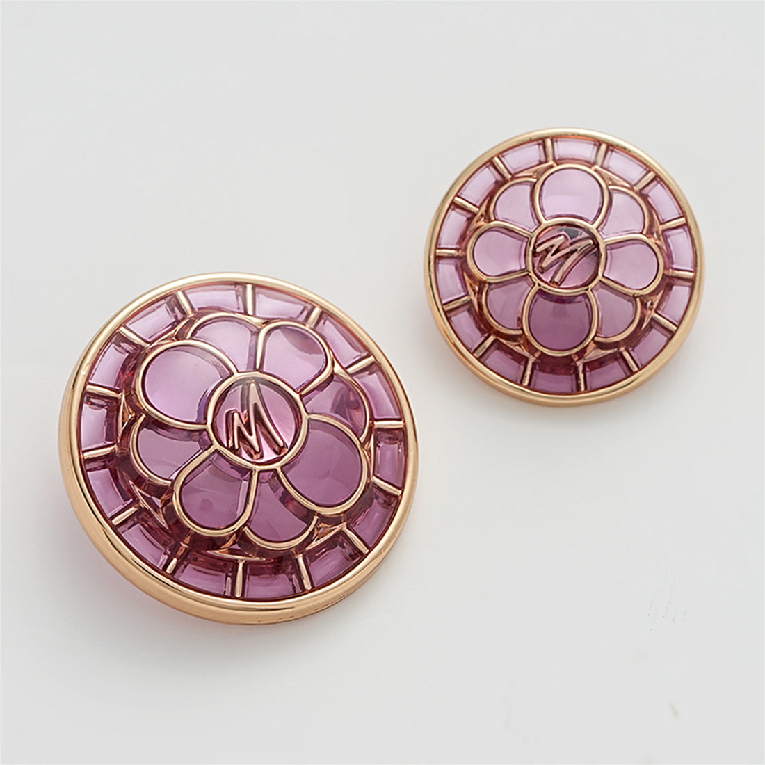 Rožnato rdeč kovinski gumb s cvetom in črko M, 5 kosov