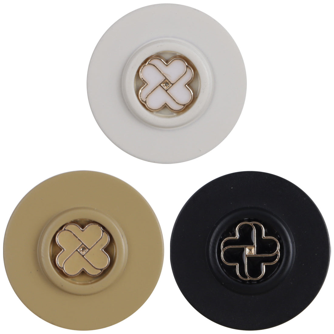 Beli kaki črni majhni cvetlični gumbi iz smole z metalnimi nogicami 10 kosov
