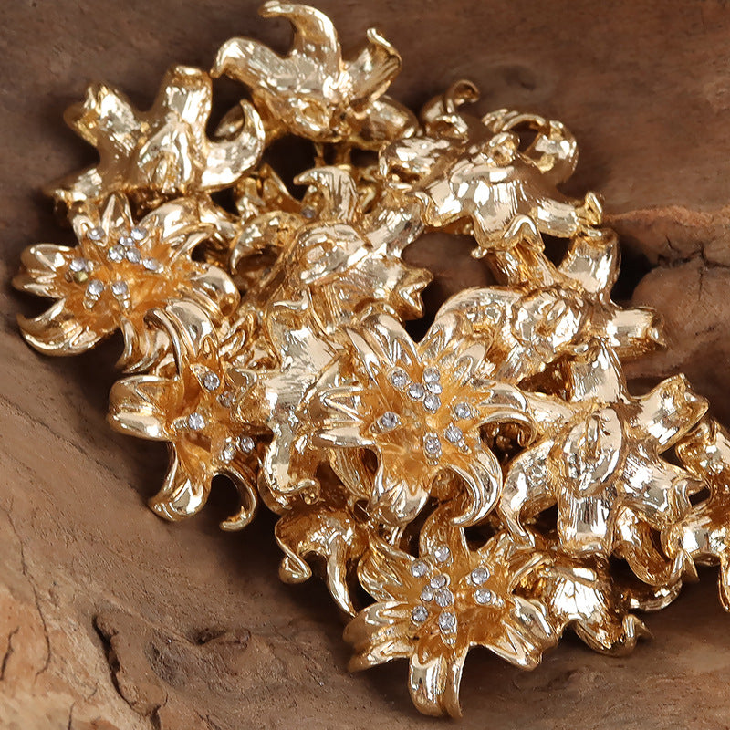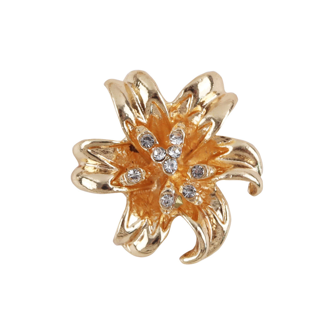 Bleščeči zlati 3D kovinski gumbi v obliki cvetov s kristalnimi poudarki, 10 kosov